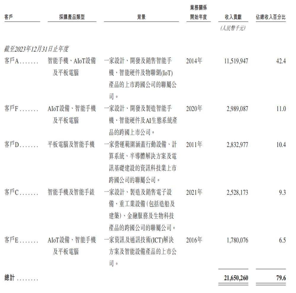 2022年、2023年及2024年以及截至2025年9月30日止来自前五大客户的收入分别占其总收入的87.6%、79.6%、82.2%及79.4%。