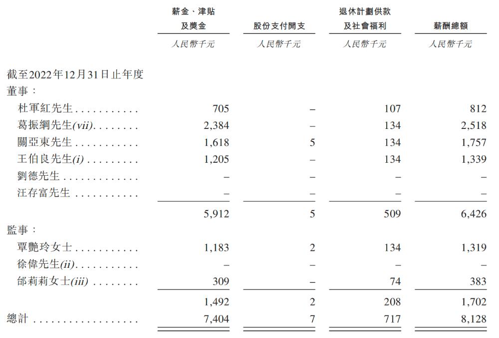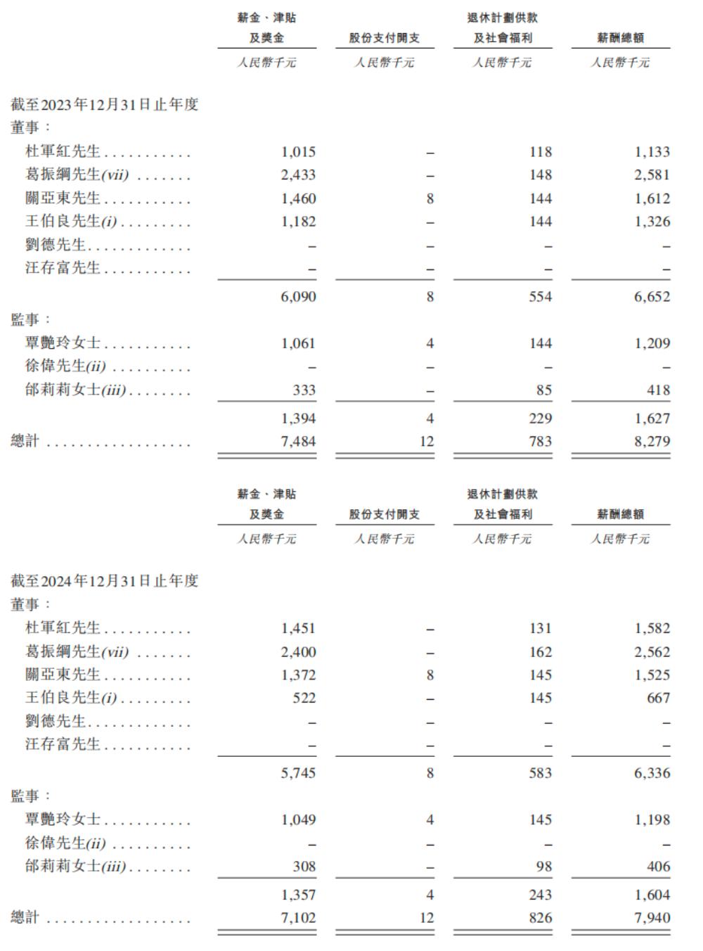 截至2022年、2023年、2024年12月31日止年度及截至2025年9月30日止,龙旗科技向董事支付的薪酬总额分別为680万元、700万元、670万元及630万元。
