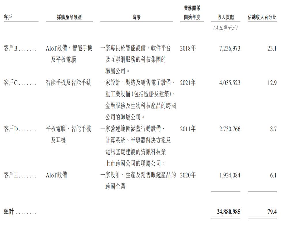 于往绩记录各年度/期间,客户A即小米集团为龙旗科技的最大客户。截至最后实际可行日期,小米集团持有本公司4.94%股权权益。