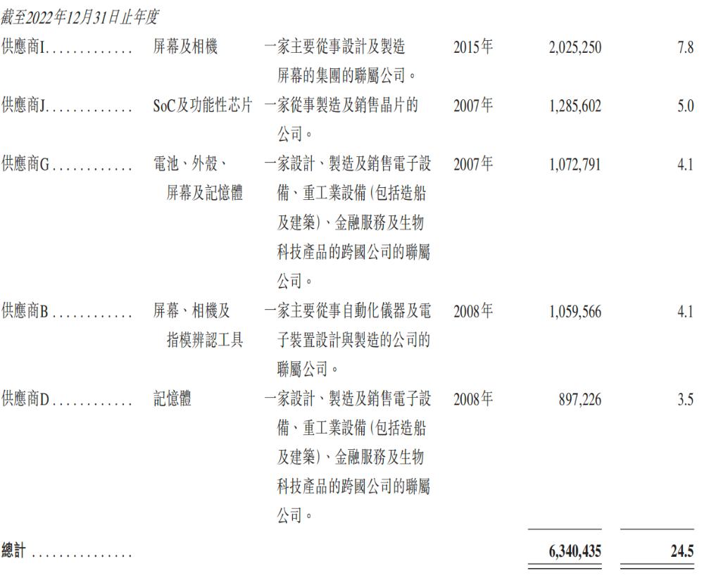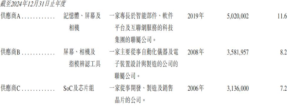 于往绩记录期间,龙旗科技的供应商主要包括原材料、设备、生产耗材及包装材料的供应商,以及委外制造服务供应商和外部研发测试公司。