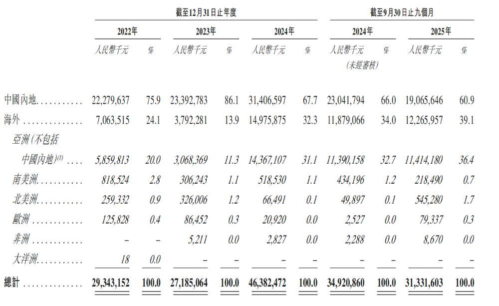 四、小米为第一大客户,中国大陆客户收入超75% 龙旗科技的主要客户来自中国大陆,2022年、2023年及2024年以及截至2025年9月30日止的收入占比为75.9%、86.1%、67.7%、60.9%。