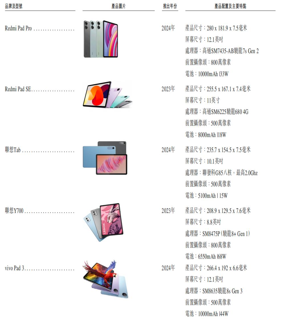 根据弗若斯特沙利文的资料,2024年以平板电脑ODM出货量计,龙旗科技在全球平板电脑ODM厂商中排名前三。截至最后实际可行日期,其已成为三家头部品牌的主要ODM合作伙伴。