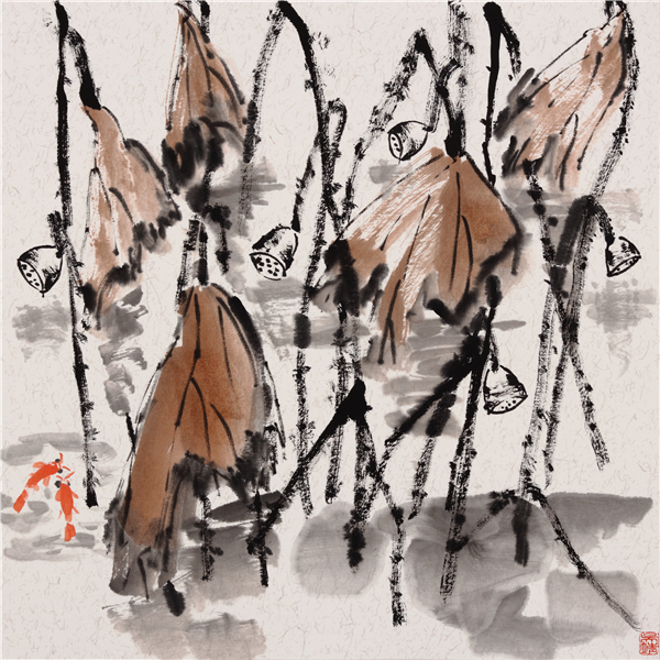 吴靖笔下的精妙,远非止于画面的荷塘月夜、紫藤鹤影。其真正动人之处,在于“画外之意”。艺术家以笔墨为引,以诗心为魂,使每一幅作品都成为一个完整的诗意世界。观者所见的,不仅是四季的形态与色彩,更是流淌其中的时序韵律与生命哲思。乃“象外之象,景外之景”,其境界已然超越单纯的视觉美感。