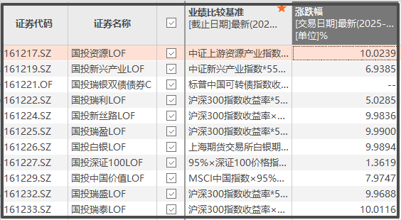 白银基金代码是161226。结果今天从161217到161233字段的所有基金,几乎全线涨停。