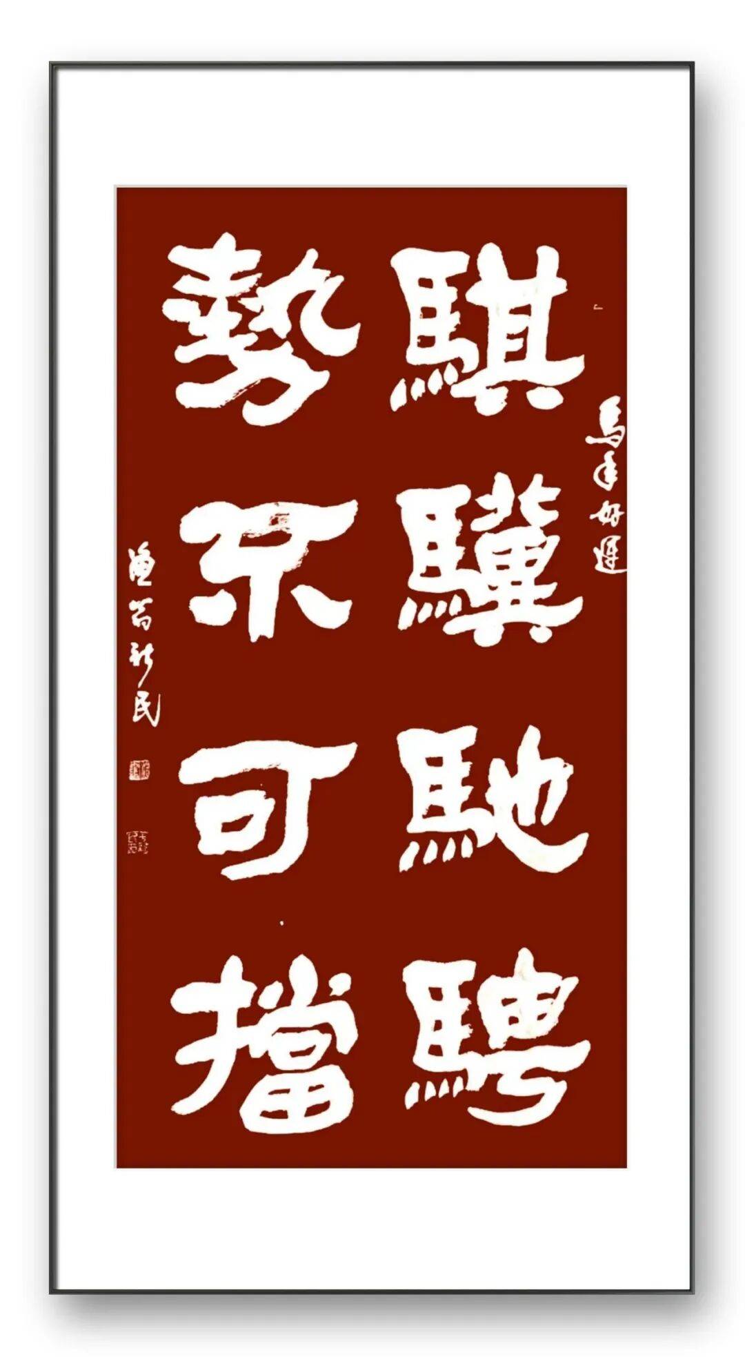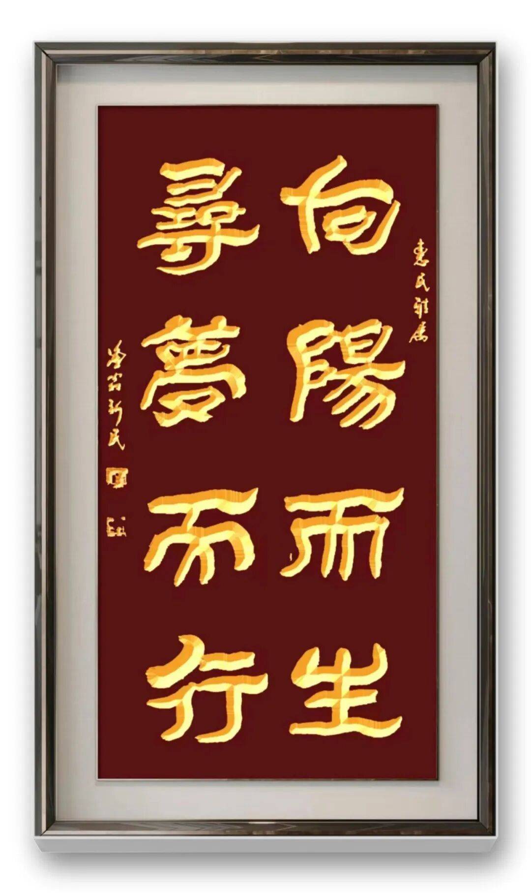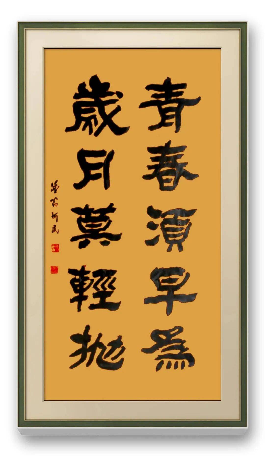 于新民先生的书法之路,是一条坚守与创新并存、传承与发展共进的道路。他数十年临池不辍,以笔墨为媒,传承中华优秀传统文化,以创新为魂,彰显当代艺术审美;他集各家之长,在张迁之拙与曹全之纤间寻得新境,以藤为韵、以隶为骨,创造出独树一帜的“藤隶”风格,让隶书这门古老的艺术在新时代焕发出新的生机与活力。他的每一幅作品,都是刀与墨的对话,是传统与现代的碰撞,是文化与情怀的交融;他的每一次创作,都是对艺术的敬畏,对传统的传承,对创新的追求。