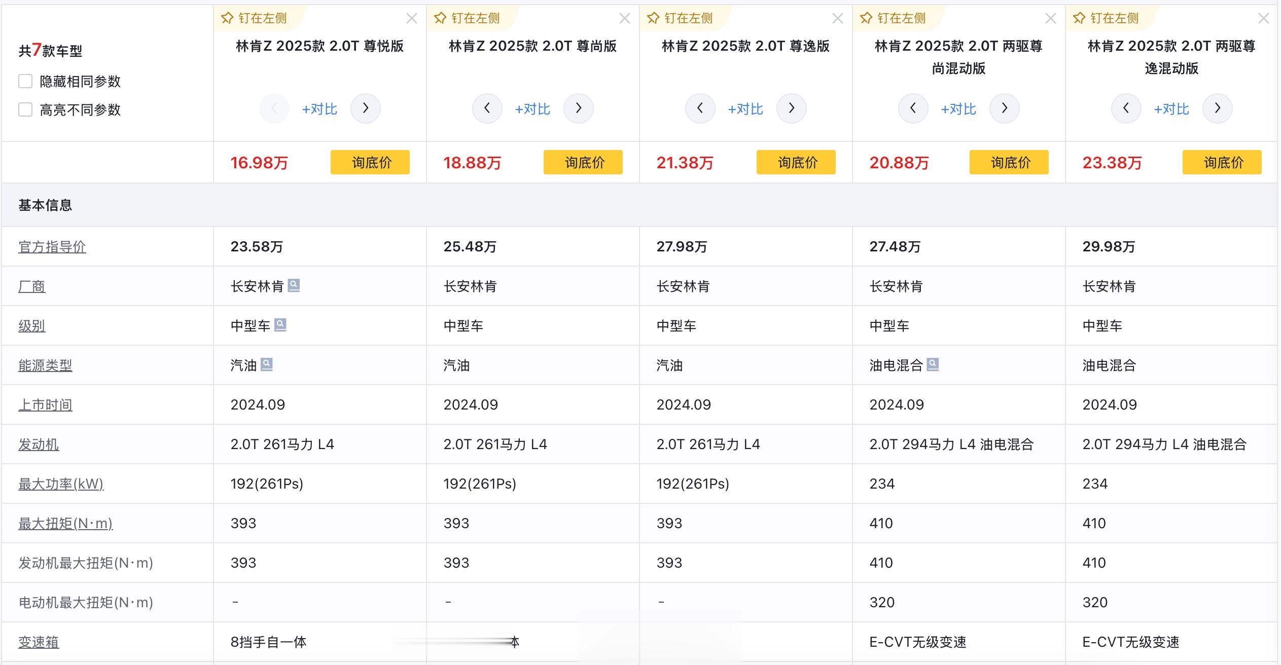 目前在售的林肯Z为2025款车型,有3款燃油和4款混动共计7款车型,燃油版为搭载2.0T发动机,匹配8AT变速箱,驱动形式为前置前驱,百公里加速6.99秒,混动版2.0T+前置单电机的油电混合动力,匹配E-CVT的变速箱,驱动形式同样为前置前驱,百公里加速6.04秒。价格上,燃油版的起售价为25.48万元,而混动版起售价则来到了27.48万元,因此个人觉得在选车的时候,直接看燃油版就好了,毕竟在当下的一个环境,省到就是赚到,我们来看看燃油版3款车型的差别,看看选哪款最合适?