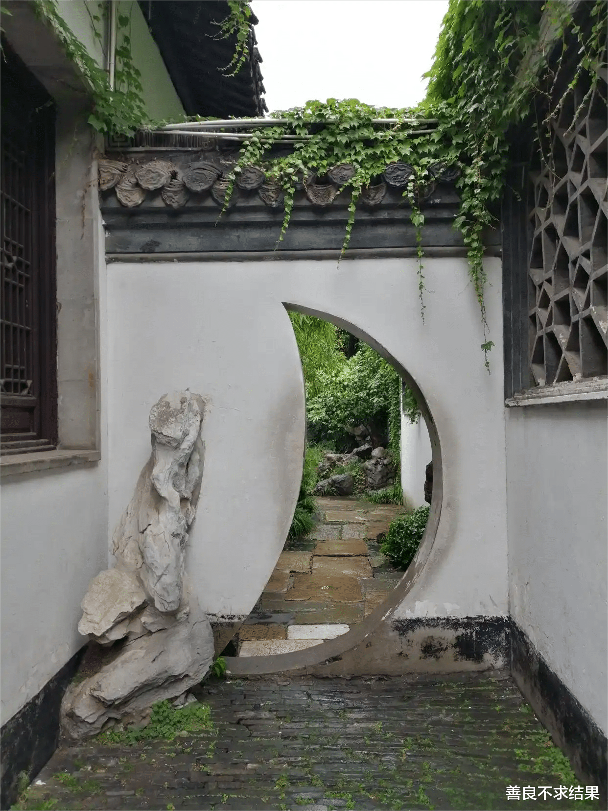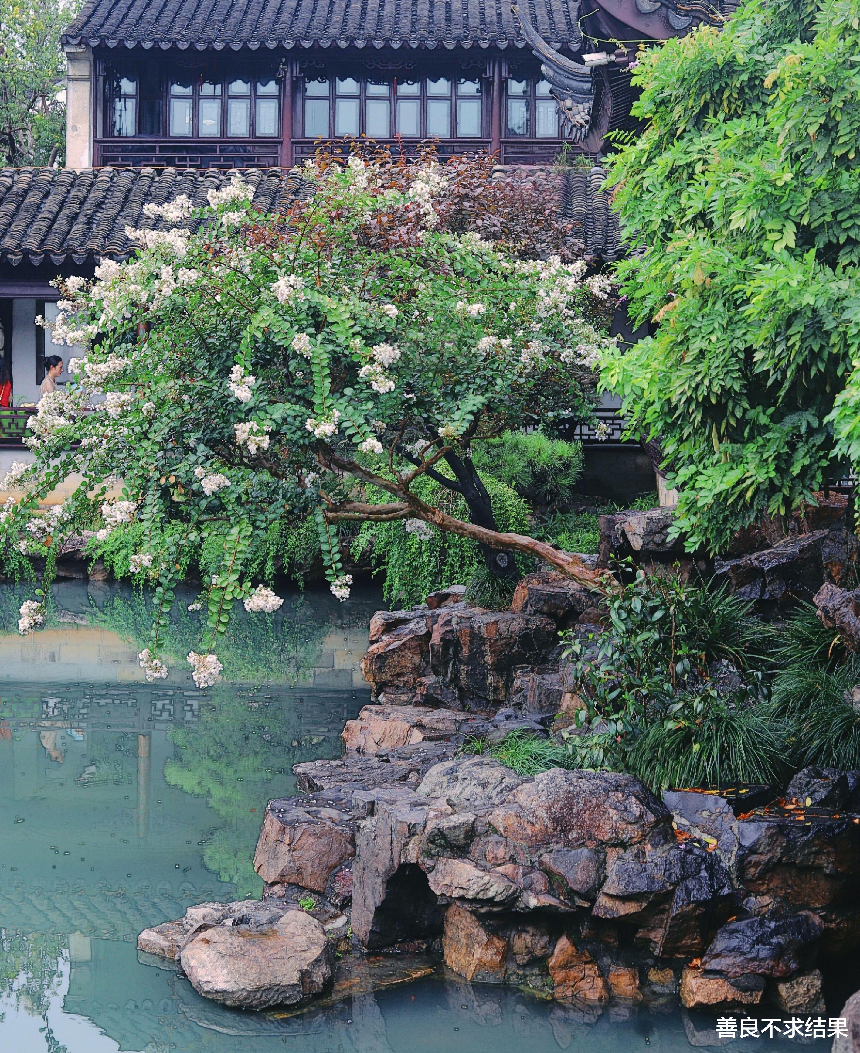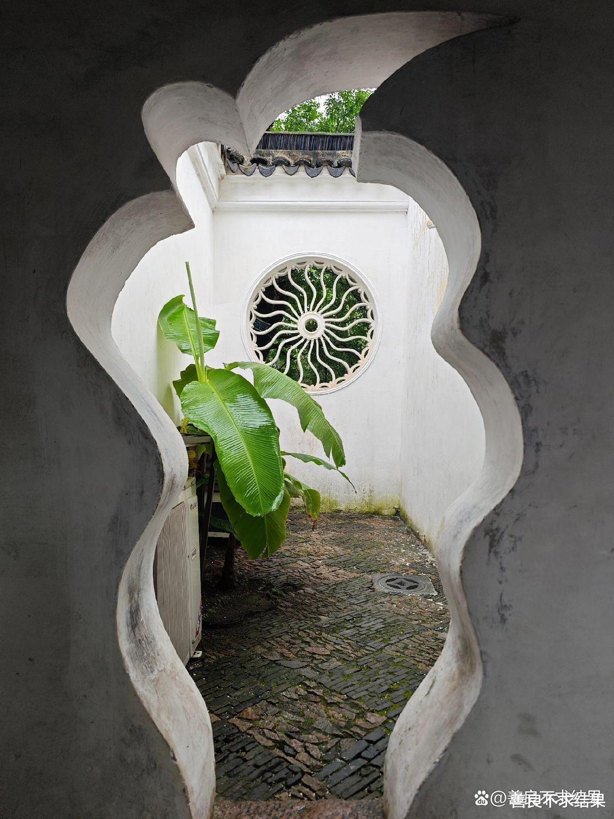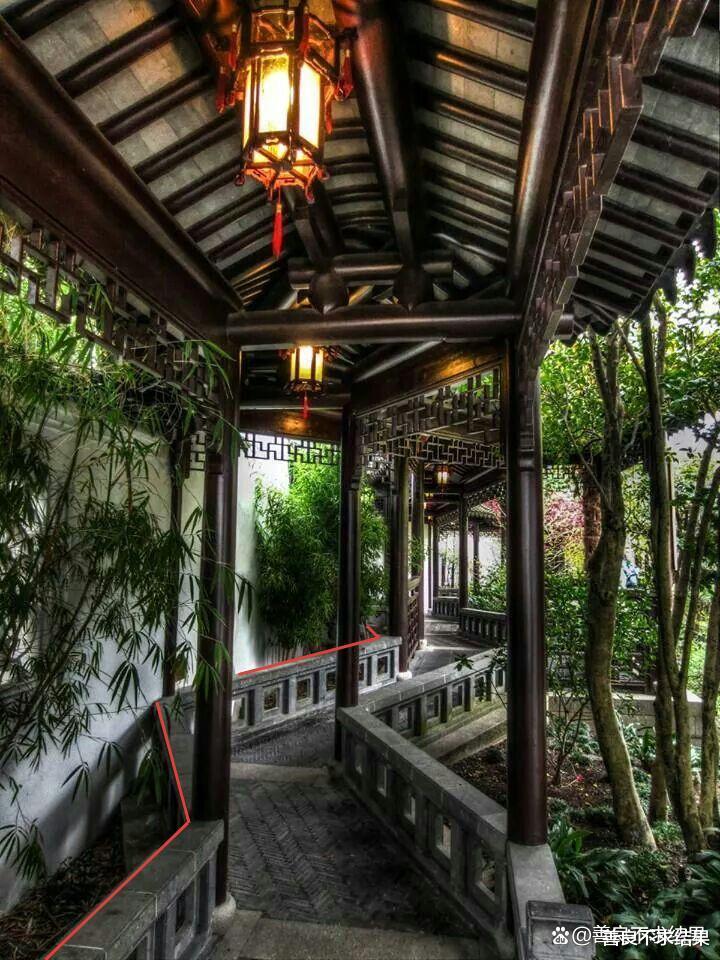 于是,古人又创造了另一种“兼容”方式——“移步换景”。基本上每转移一个方向,就会看到一个不一样的景观。尤其在带廊道、小空间的庭院,一墙之隔可能有,两个不一样的“美景”。这也许就是古人“考究”的美妙之处吧。