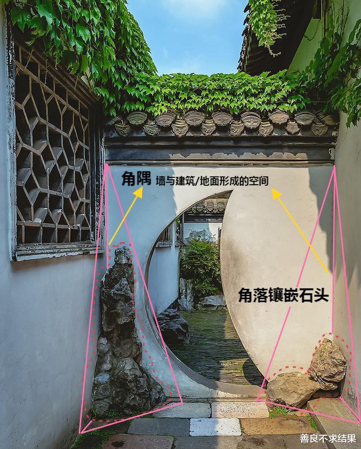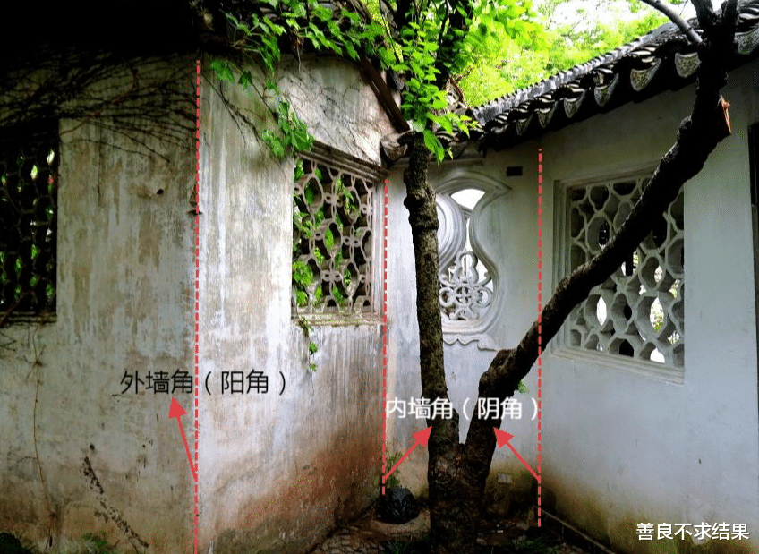 在中式园林里,古人对庭院的角落怎么利用,极为考究。古人把墙角分了“阴阳”——院内的内墙角叫“阴角”,院外的外墙角叫“阳角”。日常打理庭院,我们所关注的,大部分都是院内的阴角。但“奇妙”的是,在中式园林中,“阴阳”没有过分的绝对。同一面墙,同一个墙角,可能兼具阴角和阳角的作用。
