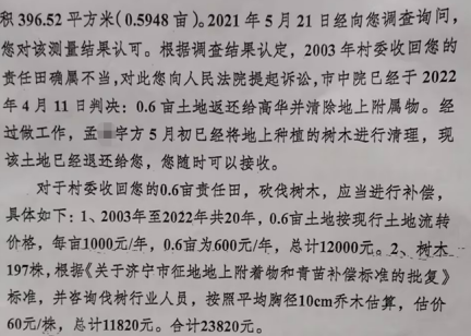 土地收回与树木处置纠纷:判决返还但补偿未到位