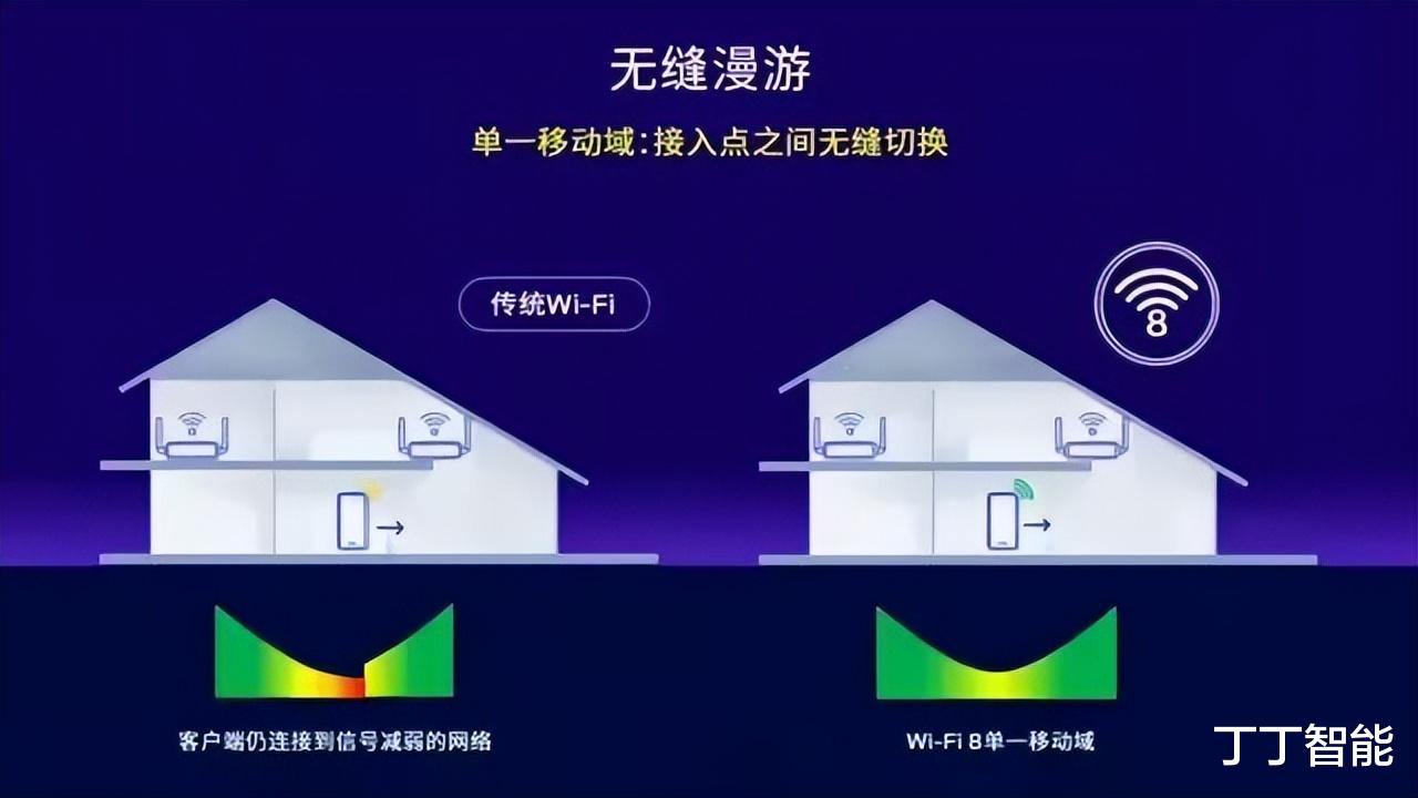 连接稳定性方面,Wi-Fi 8 祭出了 “SMD 无缝漫游” 这个大招。以前用 Wi-Fi 漫游,从客厅走到卧室,设备得先断开旧路由器,再连接新路由器,中间难免丢包,打游戏时突然卡顿、视频通话突然掉线都是常事。