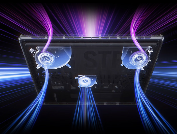 除此之外,想要保证游戏长时间高速运行,散热绝不可忽略!ROG枪神9 Plus升级采用冰川散热架构3.0增强版,以三风扇、端到端均温板与三明治冰翼鳍片的黄金组合,构建起立体散热网。更在CPU与GPU核心区覆盖二代暴力熊液态金属,大幅提升导热效率。即便面对长时间高水平激战,也能保持性能稳定,持久作战无压力!