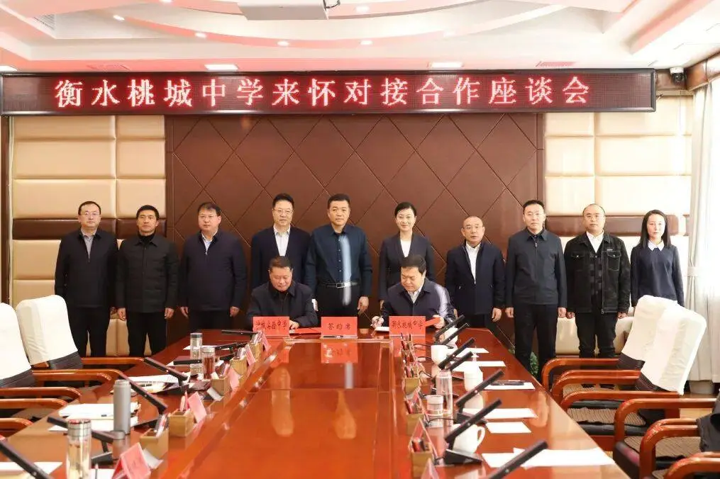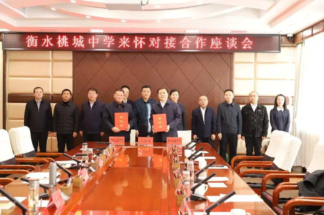 为充分发挥我校品牌效应和资源优势,在河北地质大学派驻怀来驻村工作队的牵线搭桥下,在怀来县委县政府的高度重视下,在怀来县教体科局的悉心指导下,2025年12月19日,衡水桃城中学和怀来县对接合作座谈会在县政务楼会议室隆重召开,双方达成教育战略发展共识,合作校落地沙城实验中学。并在两校合作办学的带动下,全县教育形成千帆竞发的生动局面。