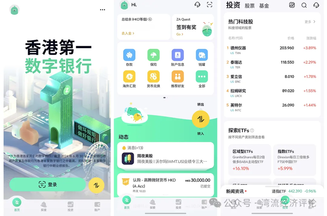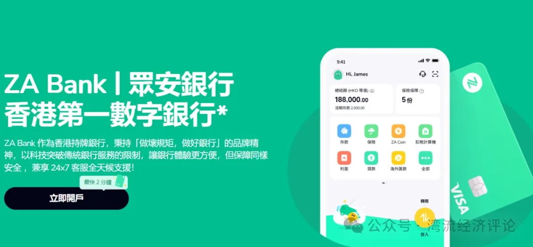 目前,香港数字银行(服务方式类似于内地的互联网银行,完全线上进行,没有线下柜台)可以做到便捷开户。如众安银行,只要人在香港,无论是高铁站、机场还是商场,无需预约,无需复杂证明,在众安银行App上提交身份证及出入境记录即可,甚至“上个厕所就把众安开了”。
