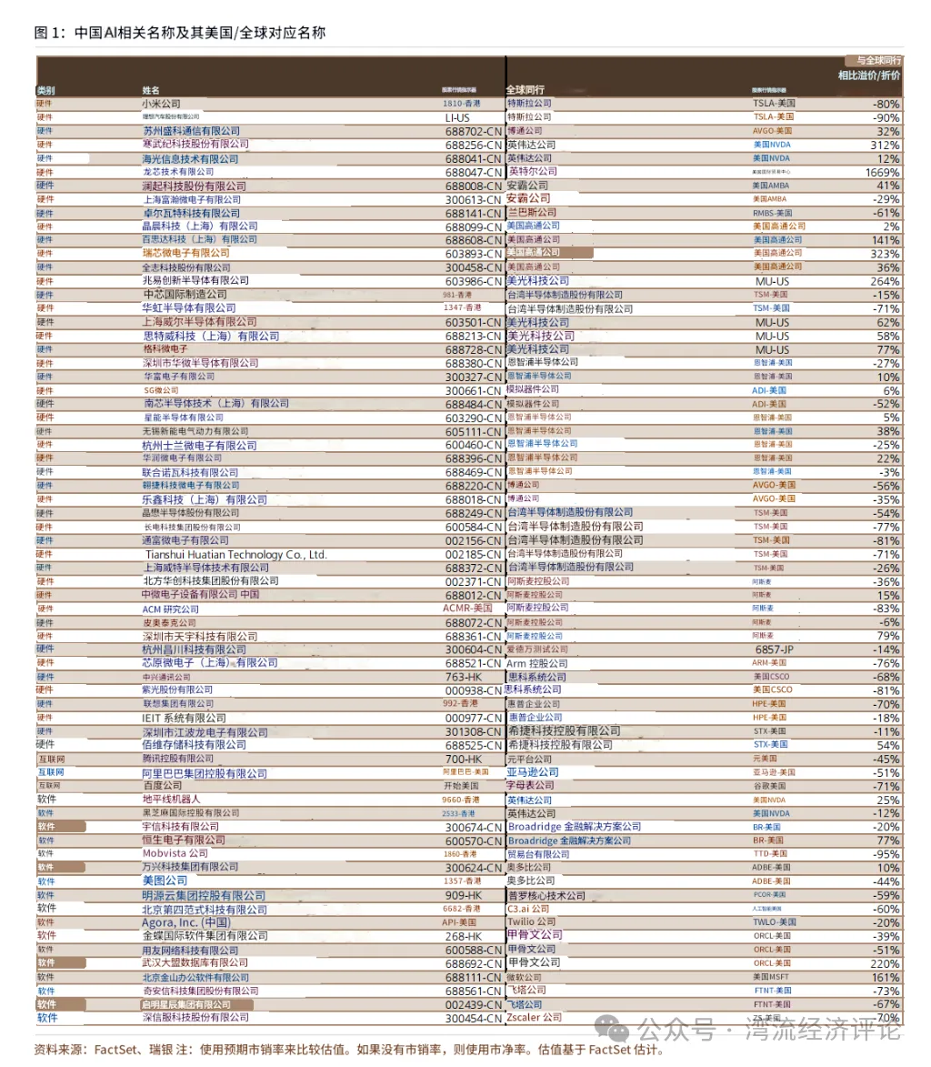 华尔街见闻:瑞银给了份对标名单:寒武纪对英伟达,小米对特斯拉,中芯国际对台积电……