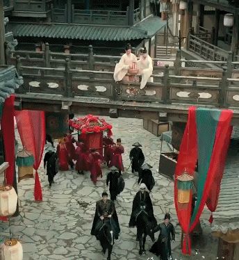 比如第8集,萧彻护送太子妃途中遇袭,镜头先经由他缓缓环视四周:阁楼上撒花的女子、路边献艺的杂耍人、围观喝彩的孩童……在相对松弛的打击乐衬托下,一幕市井喧闹却暗藏危机的众生相徐徐铺开。