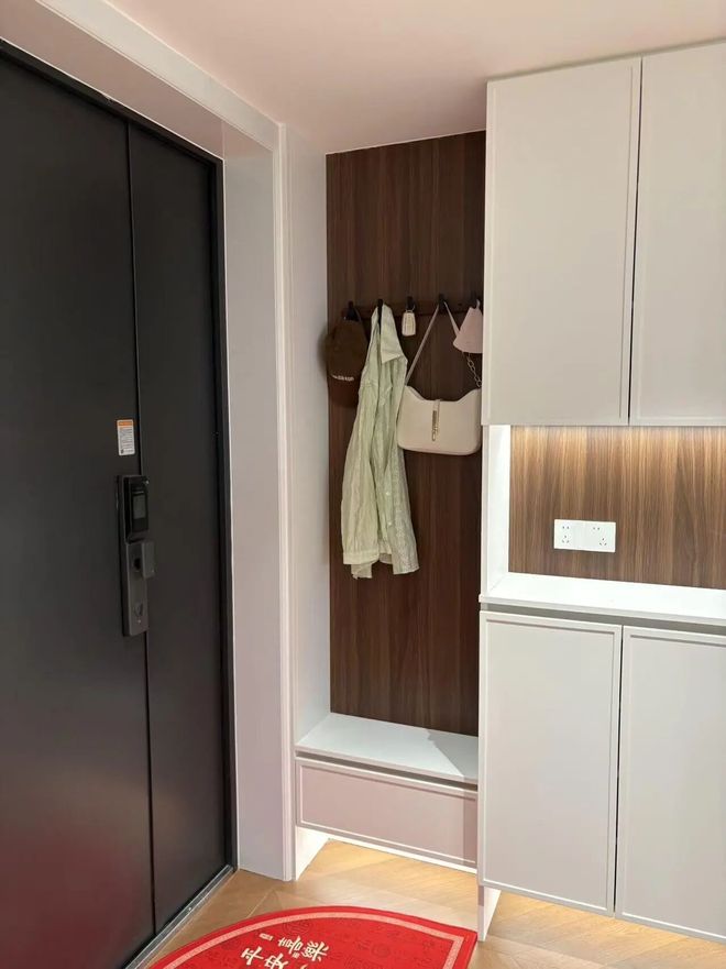 网友@小橙子:说实话,我有点后悔给玄关柜设计换鞋凳了,日常使用率很低。