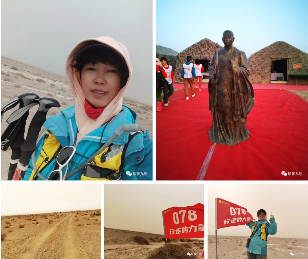 特别感谢志愿者教练卢乐,她不用登山杖,不用防沙鞋套,一路不停的讲话分享她的徒步经历,还帮我们拍照。感觉她毫不费力的陪我们我们走了最后五公里。