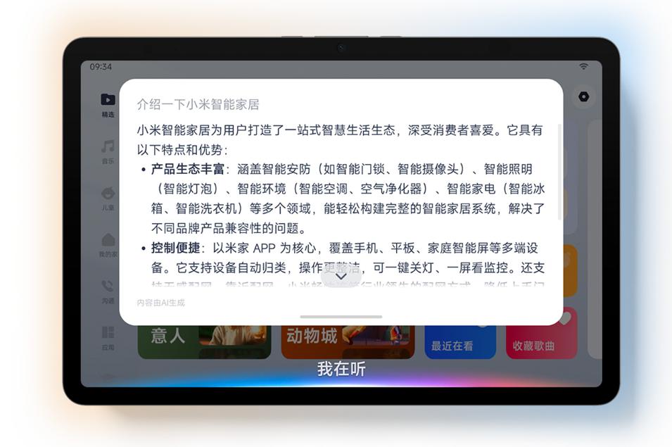 对有老人和小孩的家庭来说,易用性比性能更重要。家里老人之前一直学不会用手机视频,现在只要说“小爱,给儿子打微信电话”,屏幕就会自动拨号,800万像素的前置摄像头画质清晰,老人不用记任何操作步骤。它还支持7种方言识别,我家老人说的方言比较小众,测试下来识别准确率很高,再也不用为了发指令特意学普通话。专属的大字界面模式,把字体放大后,老人看戏曲、听健康科普都很轻松。