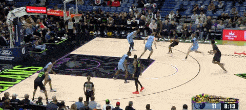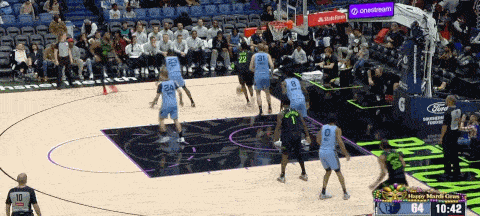 底线一对一兰代尔,奎因转面筐突破向中路转身吸引杰克逊的协防,奎因单手从杰克逊身后传给切入的蔡恩,后者原地起跳充分发挥身体优势完成终结: