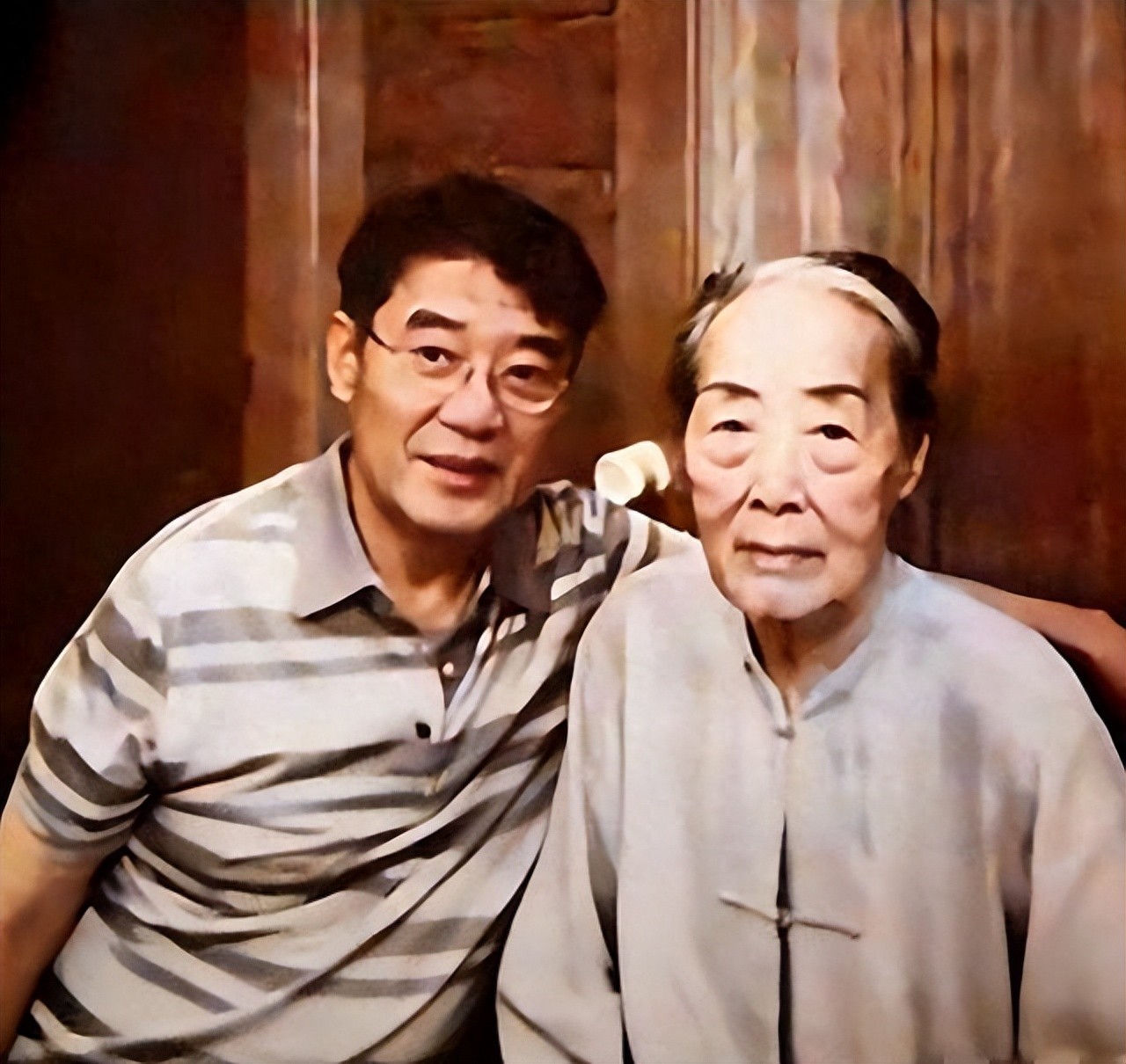 那会儿他刚卸了妆从外地风尘仆仆蹿回台北,凑到九十高龄的老娘跟前留了影。