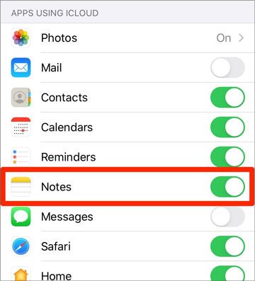 2. 选择iCloud并打开Notes 。