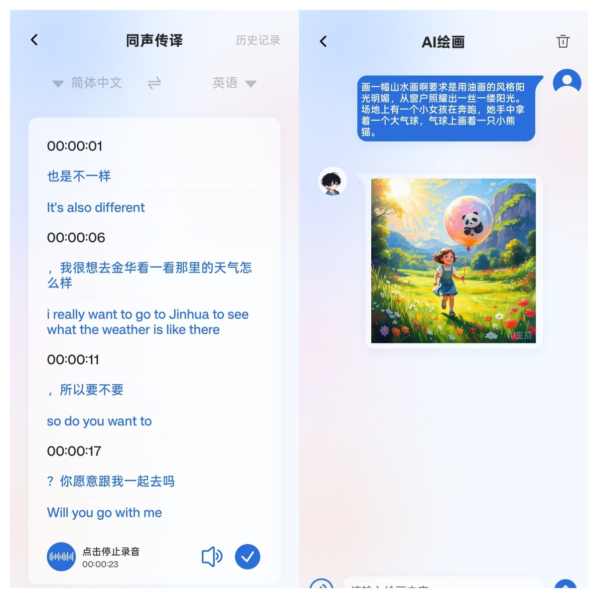 别以为它只是花瓶!内置的“AI大脑”集成了讯飞、DeepSeek等大模型,活像个随身小秘书。实测跨语言交流时,它能秒将“你瞅啥”译成标准英伦腔,连东北大碴子味都能给你翻译成莎士比亚式英语,出国旅游再也不用当“哑巴”。更绝的是AI绘图功能——我随口说了句“会开车的小熊”,它分分钟生成一张戴着墨镜、叼着雪茄的熊二飙车图,直接省了请画师的钱。这波操作,让我想起了科幻片里的“贾维斯”,只不过现在揣在耳朵上。