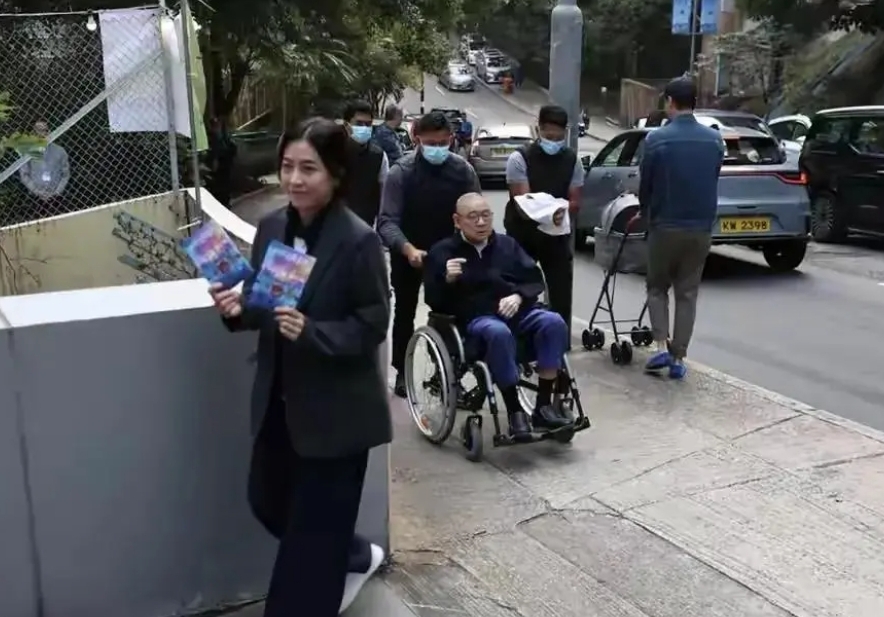 大概是为了表示对投票的尊重,刘銮雄要快进场时,并没有坐轮椅进去,而是让甘比将自己扶了起来,甘比去扶他的时候就没有盖白毛巾在手上,刘銮雄也非常自然的挽着甘比的手走路。