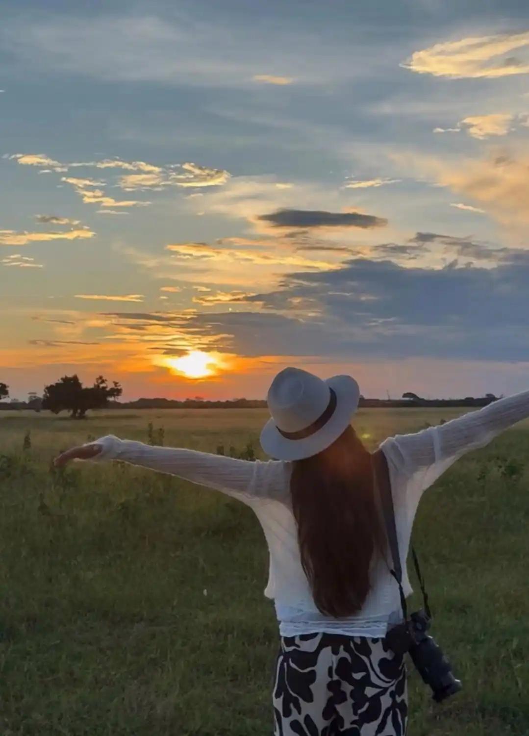 最令人动容的是,那落日的余晖倾洒在广袤大地上,把天地之间染成了温柔的橘黄色,黄轩斟上红酒,和女友嘉美并肩坐着,慢慢品味,微风轻拂着发丝,目光所到之处都是南非的绝美景致,耳边传来爱人的轻声细语,如此岁月安静美好的样子,大概就是人间最为动人的幸福啦!