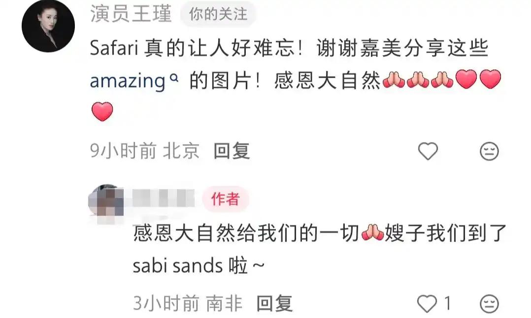 嘉美的动态下方,演员王瑾也特意前来留言互动。