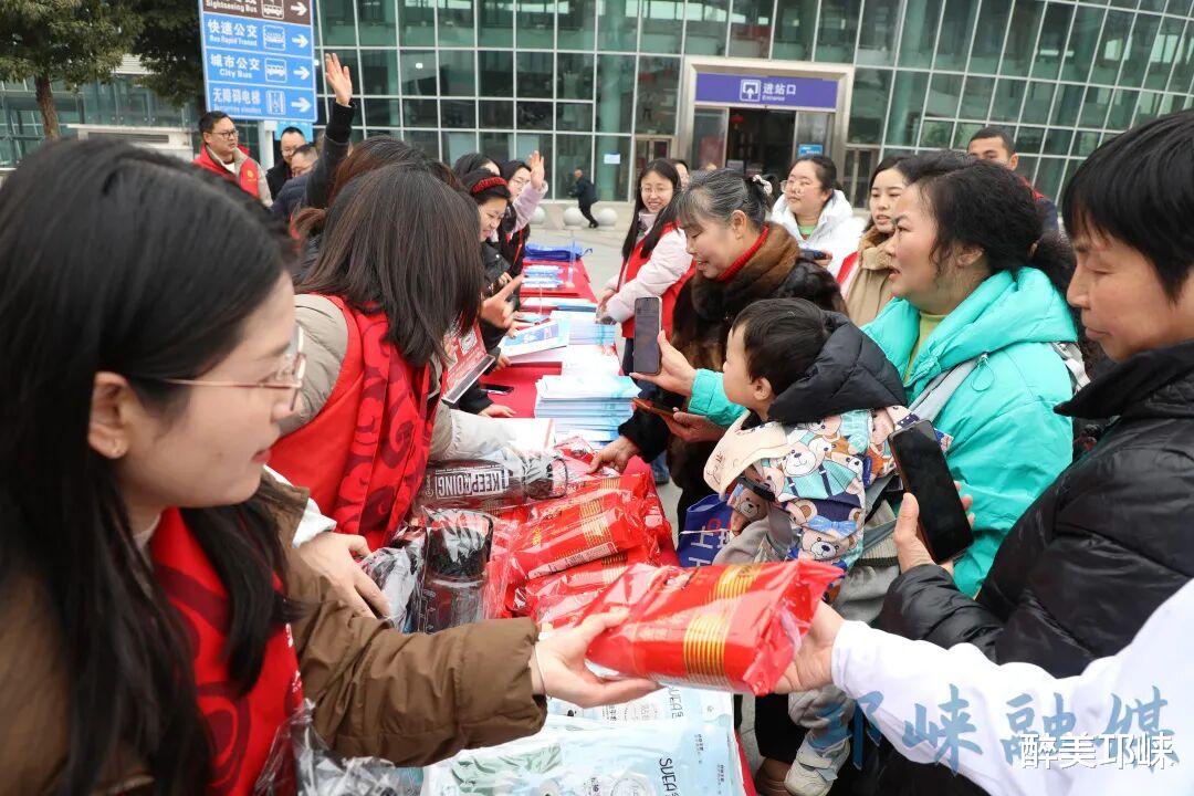 除此之外,温馨的志愿服务贯穿始终。车站内外设立的志愿服务岗,准备了许多便民物资,志愿者们则主动为携带大件行李的返乡人员提供搬运协助和换乘指引,用实际行动化解他们旅途的疲惫。同时,还准备了包含纸杯、毛巾、香皂等物品的“新春暖心礼包”,在传递佳节祝福的同时,也切实提升了返乡人员的幸福感与归属感。