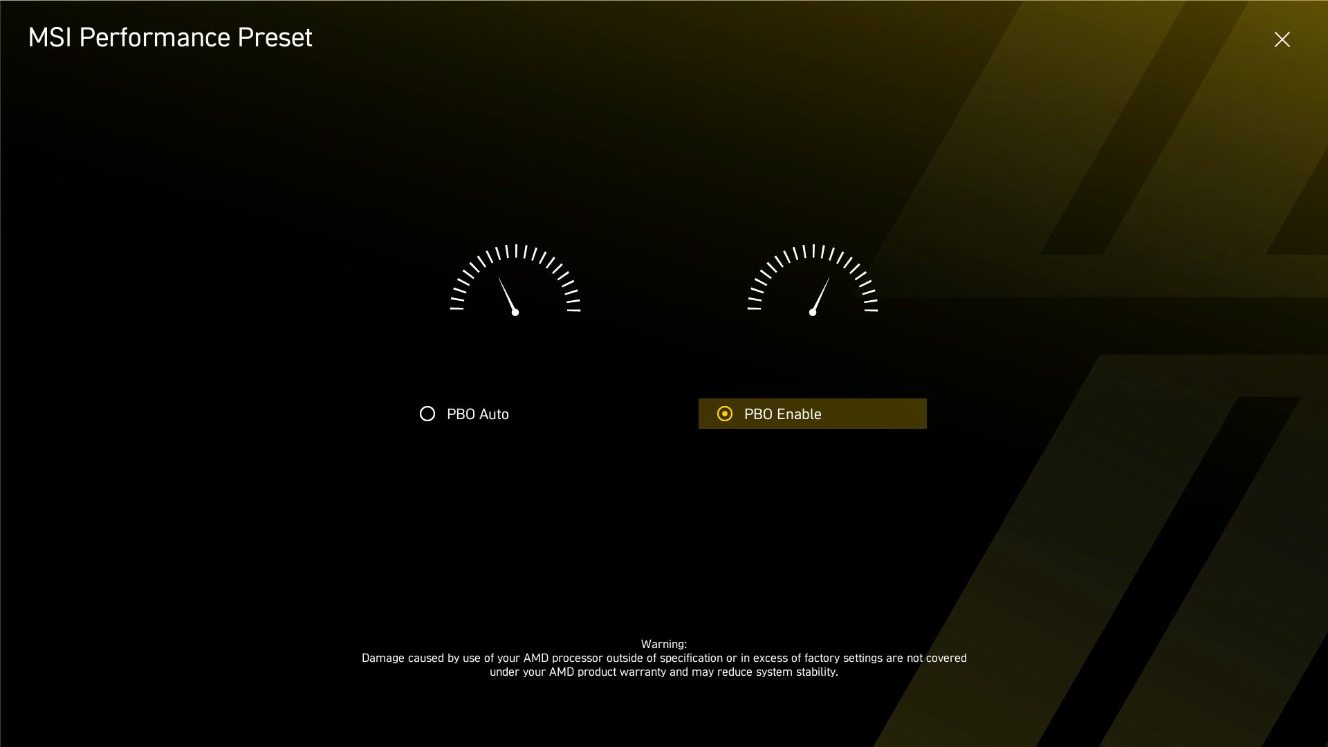 微星PBO选项预设Enhanced Mode(增强模式)、Set Thermal Point(设定温度上限)、Enhanced Mode Boost(加强版增强模式)三种模式8个档位,以及Advanced高级模式。其中,Set Thermal Point限定CPU温度墙为85°C、75°C和65°C,启用该功能后,CPU以较低电压运行;Enhanced Mode Boost是比Enhanced Mode更激进的增强模式,对硬件有较高要求,尤其吃CPU体质。