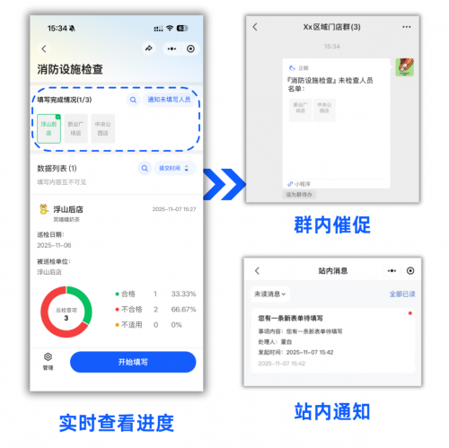 对于未及时提交的门店,可以通过多种方式进行催促,提高检查效率。