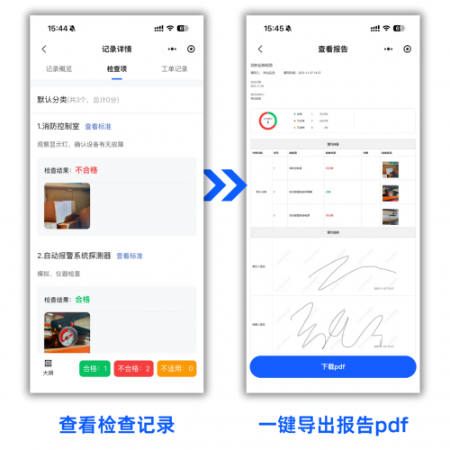 所有记录自动归档,总部可随时抽查;还可一键导出完整报告,为消防安全管理的优化提供依据。
