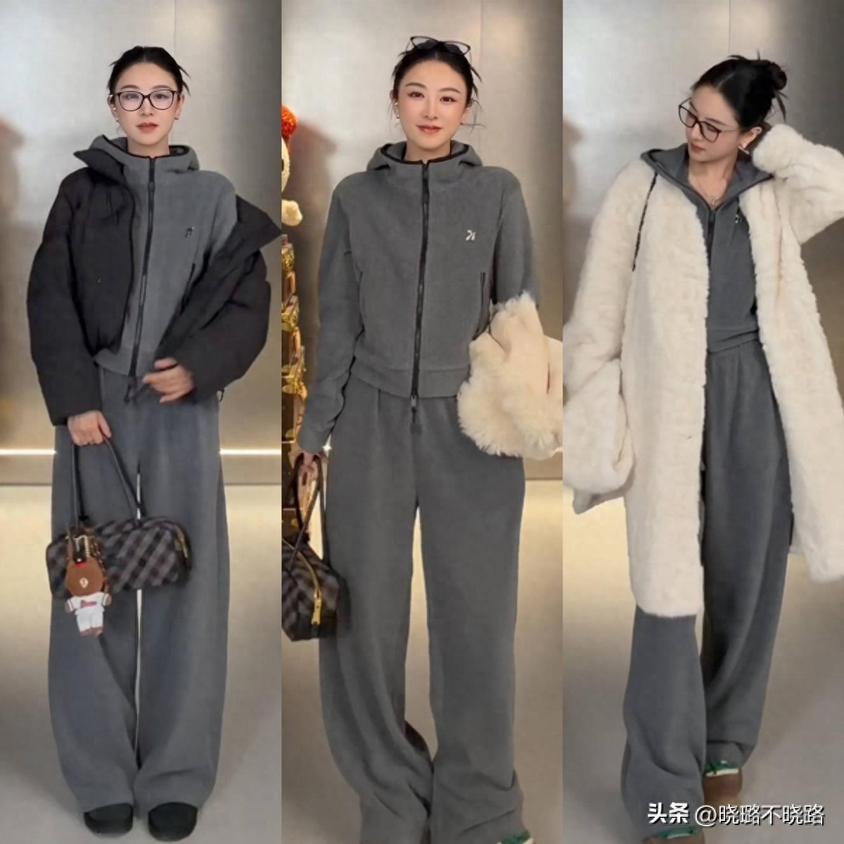 薇娅这套“灰色卫裤+同色系卫衣”的搭配再次印证了“基础款也能穿出高级感”的观点。