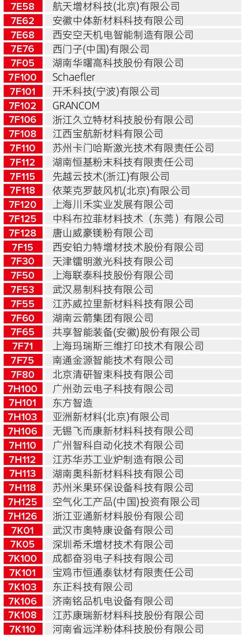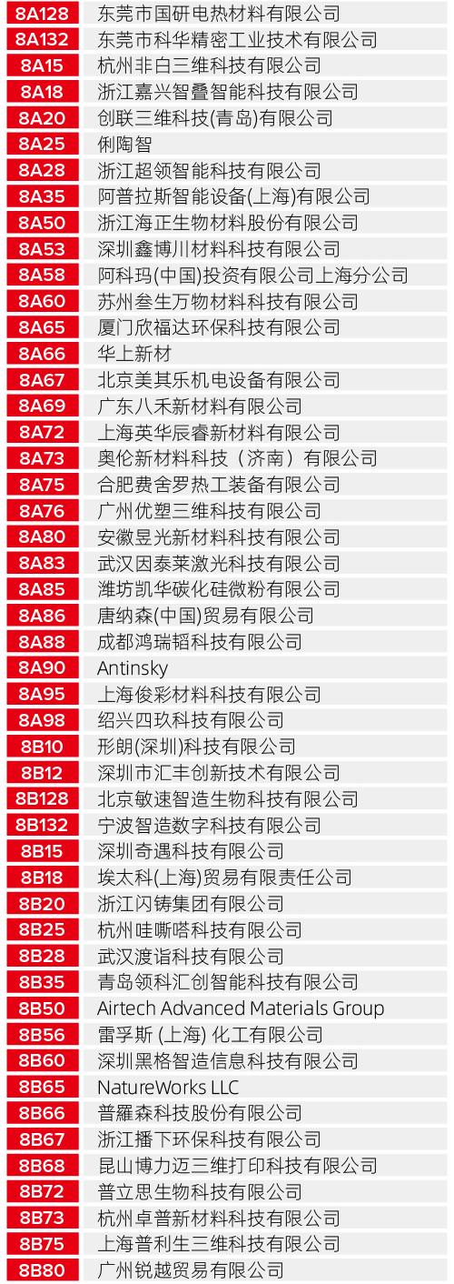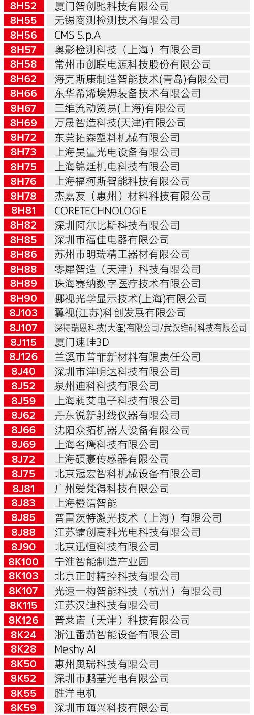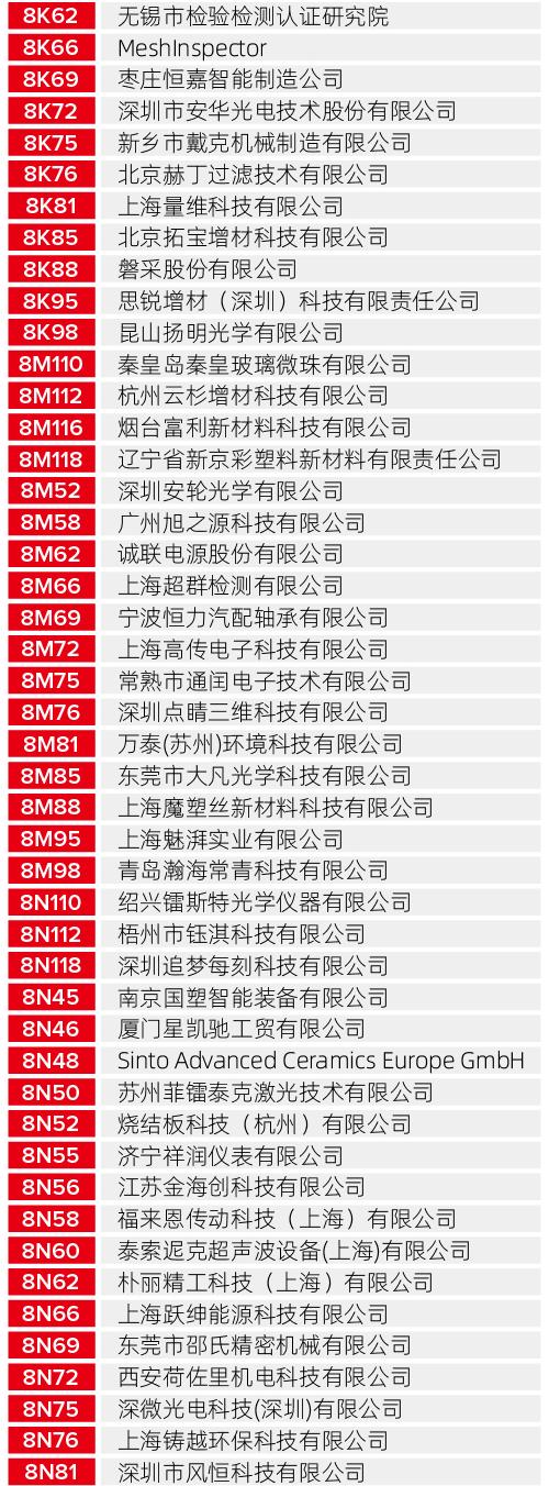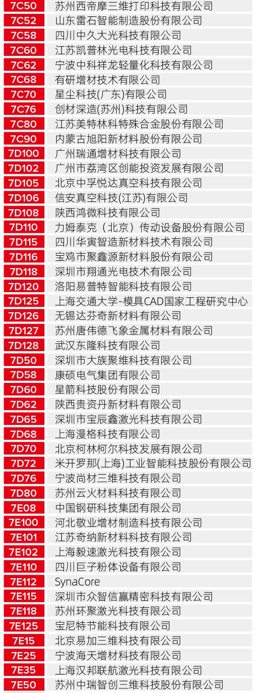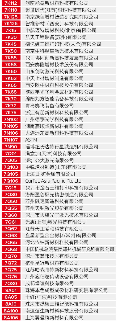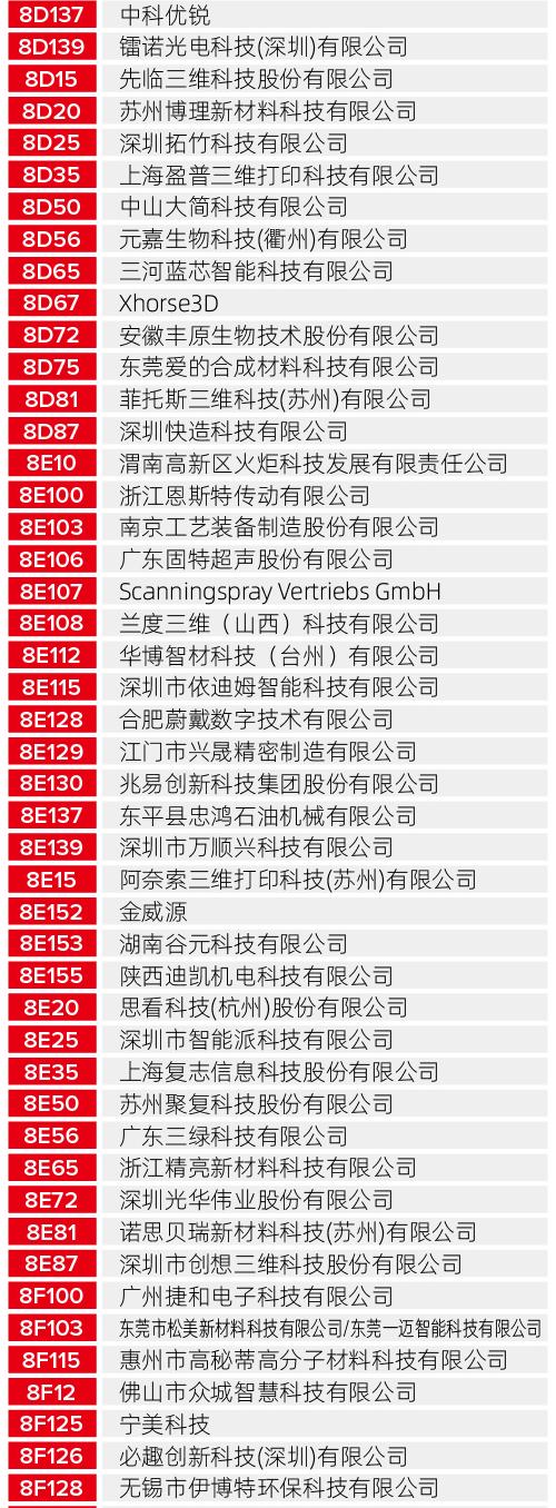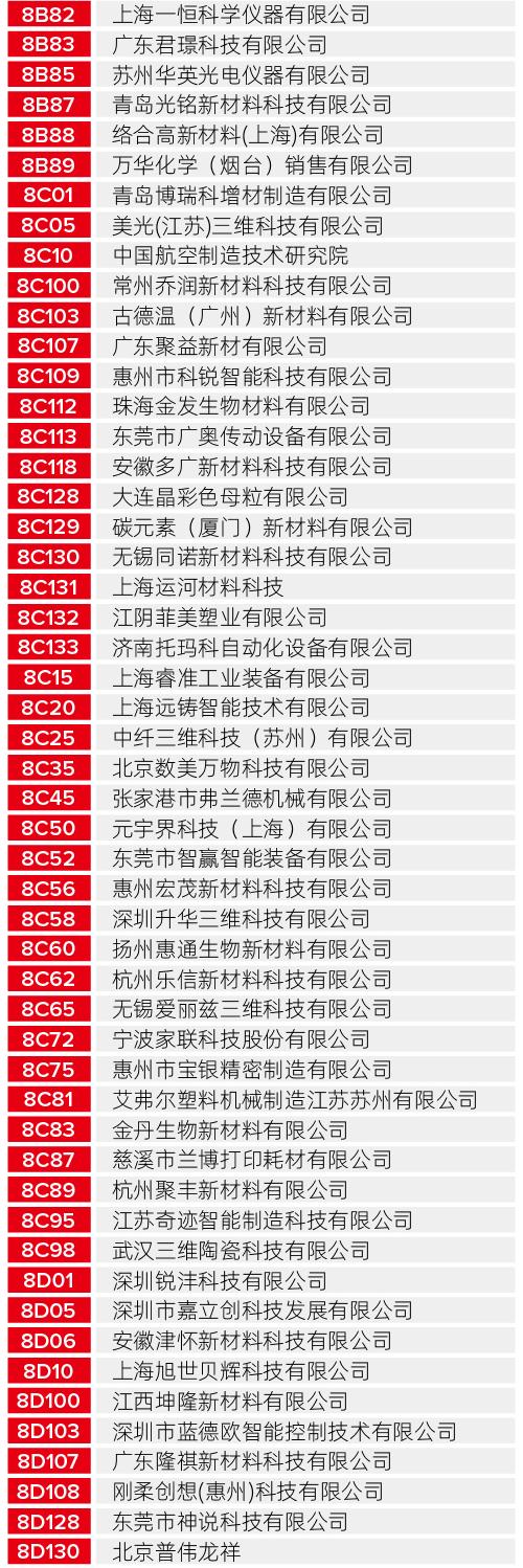无论您是寻找工业级的制造解决方案,还是关注最新的生物医疗、航空航天应用成果,以下这份详尽的展商清单都将为您提供最高效的观展导航。