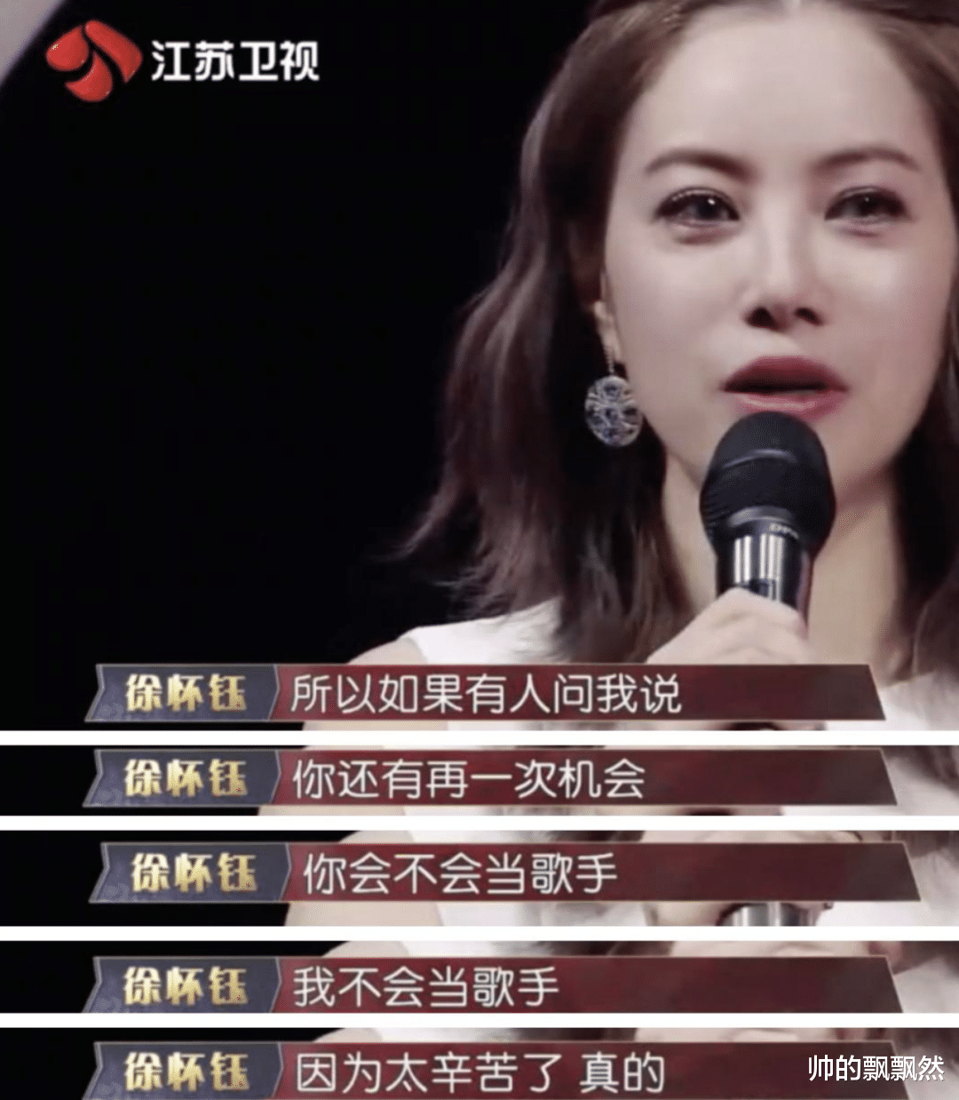 因为娱乐圈这条路太辛苦了,这让徐怀钰过得很是艰难不已。有一次,在节目上,徐怀钰被问到如果人生能重来,她会不会再当歌手,徐怀钰湿了眼眶的说:我不会当歌手,因为太辛苦了。