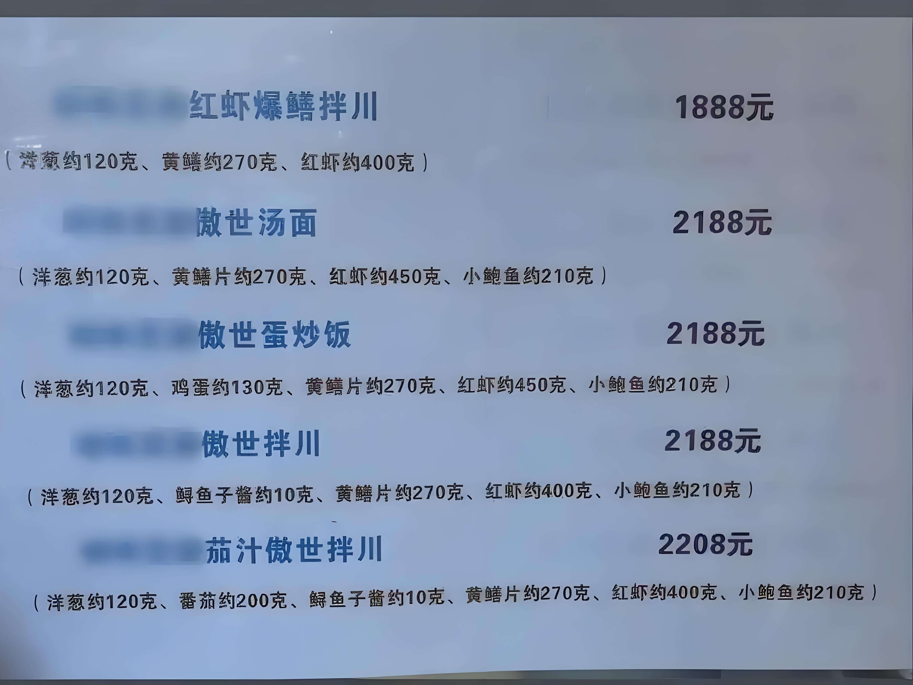 浙江杭州某面馆此前因售卖558元一碗的面食,在网络上引发热议,被不少网友评为哗众取宠。近日,该面馆又再次推出1888元至2208元的新系列面食再次引发热议。经获悉,其中2208元的“茄汁傲世拌川”包含洋葱、番茄、鲟鱼子酱、黄鳝片、红虾、小鲍鱼等6种核心食材,但这些食材搭配是否合理呢?