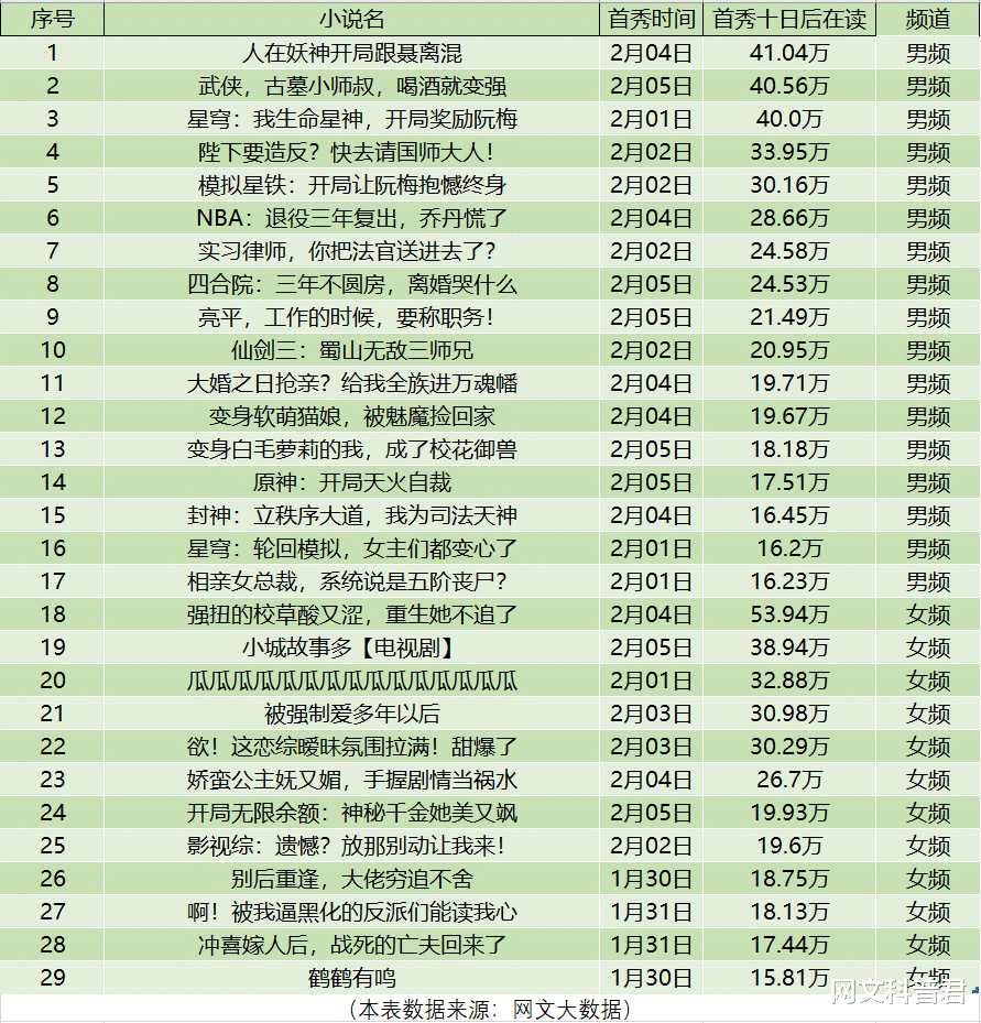 本周番茄达成十日首秀的小说6671本,男频3392本,女频3279本。这个数字算是番茄历年最高了,一周六千多本达到10万字的书开启首秀,番茄这一周的首秀量都顶得上起点半年的上架量了。其中首秀过10万在读小说数56本,过15万在读的有29本。