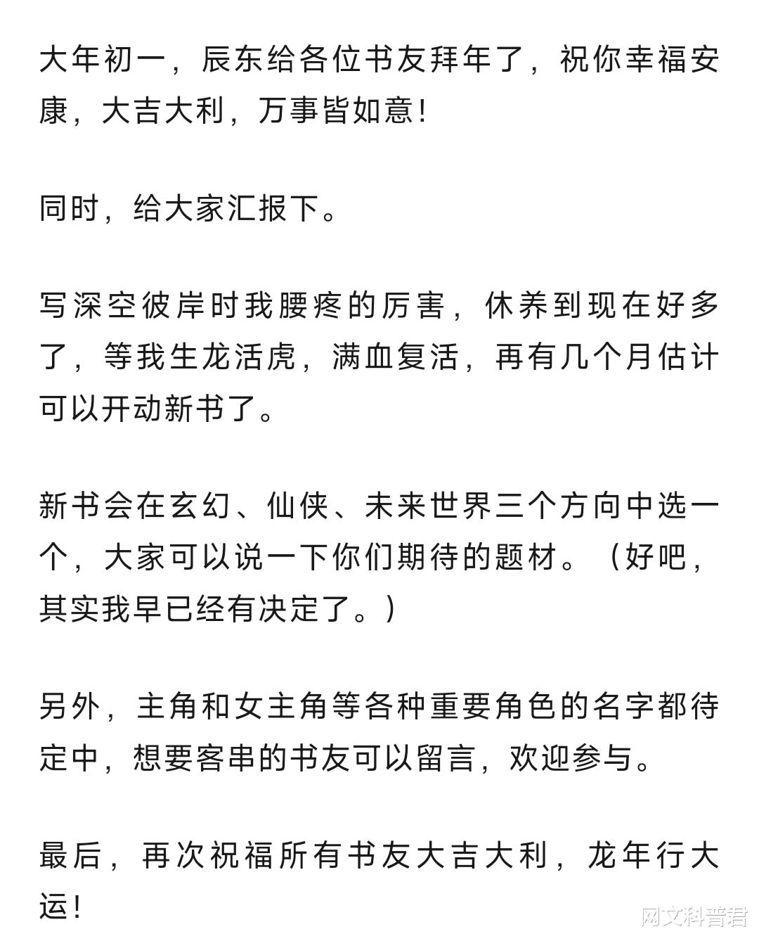 辰东10号发拜年贴称新书几个月后开。