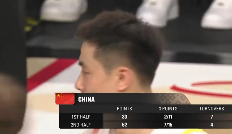 上半场比赛中国男篮的状况并不好,三分投篮极其糟糕,进攻也是非常不顺,日本队上半场打完取得47-33领先。