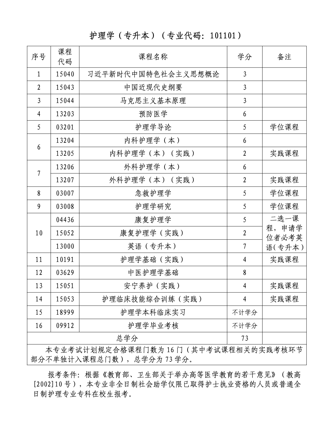 注:根据《教育部、卫生部关于举办高等医学教育的若干意见》(教高[2002110号),本专业非全日制社会助学仅限已取得护士执业资格的人员或普通全日制护理专业专科在校生报考。