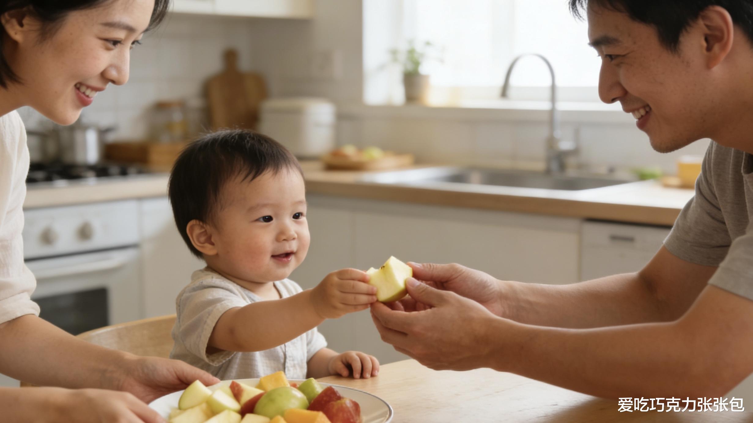 日常示范比说教更有用。家长是孩子的第一任老师,你的行为就是娃的“教科书”。分水果时,主动递给家人:“爸爸吃一块苹果,妈妈吃一块苹果,宝贝也吃一块。”吃零食时,和娃分享:“妈妈好想吃你的小饼干,能分我一块吗?”娃在耳濡目染中,会慢慢明白“分享是一件快乐的事”。