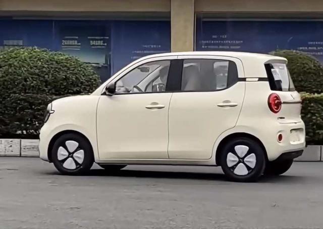 车身侧面变化大,是标准的四门四座,上下车方便。车身尺寸3268/1520/1575mm,轴距2190mm,比老款两门版更长更宽,车身姿态更稳,悬浮式车顶、黑色外后视镜、四叶草造型轮毂盖,更显年轻化,家用、代步都适合。车尾和前脸呼应,也是圆形尾灯+贯穿饰条,银标居中,简洁大方,停车时也好判断车尾位置。