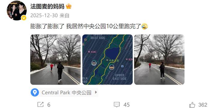 从春晚总导演到纽约跑步爱好者,她的生活彻底变了哈文发的这条跑步动态,配图是中央公园冬日的景色,她穿着专业的运动装备,脸上挂着淡淡的笑容。