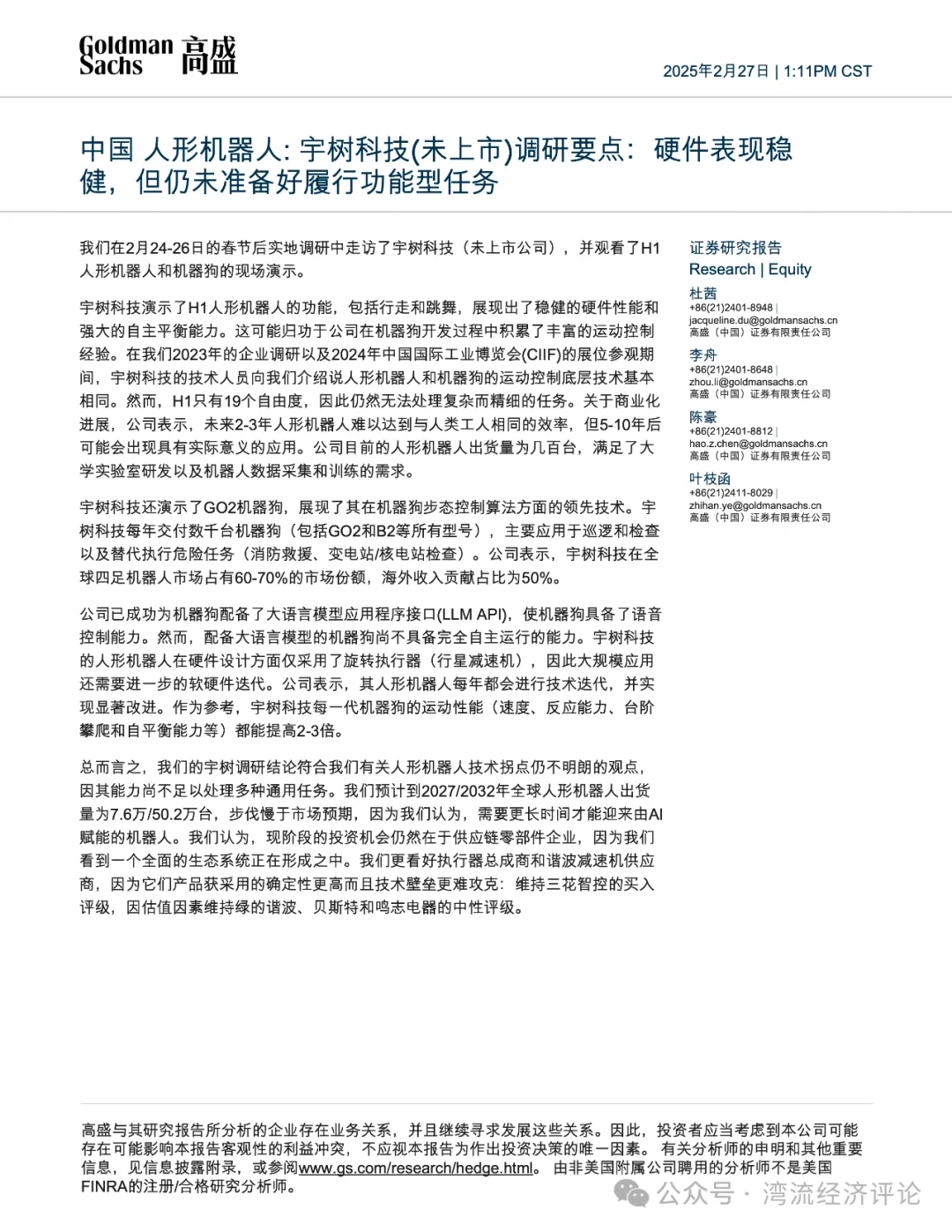 这也正是《湾流经济评论》想说的——高盛对于中国人形机器人的发展现状可能存在偏差,市场可能曲解了高盛的意思。
