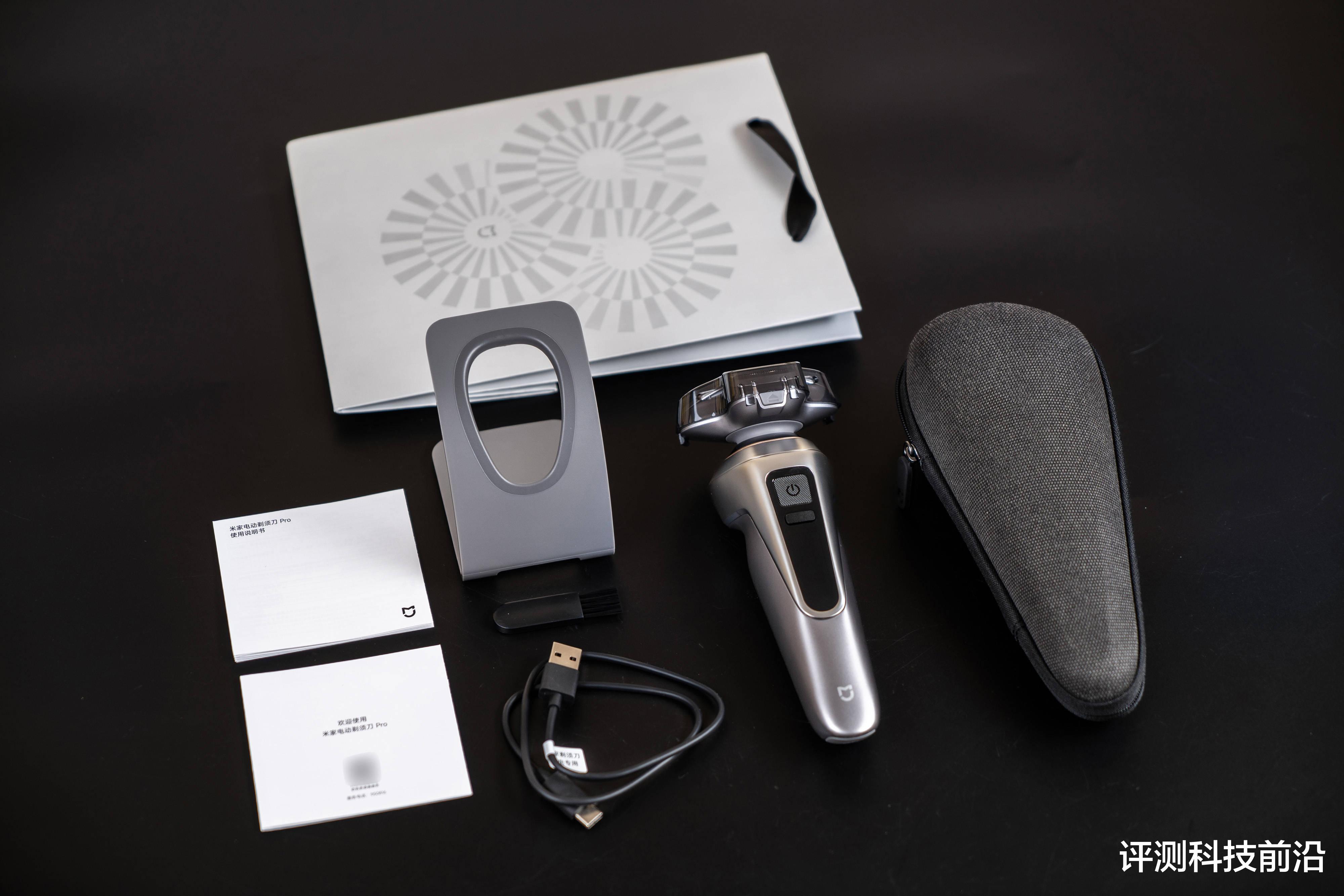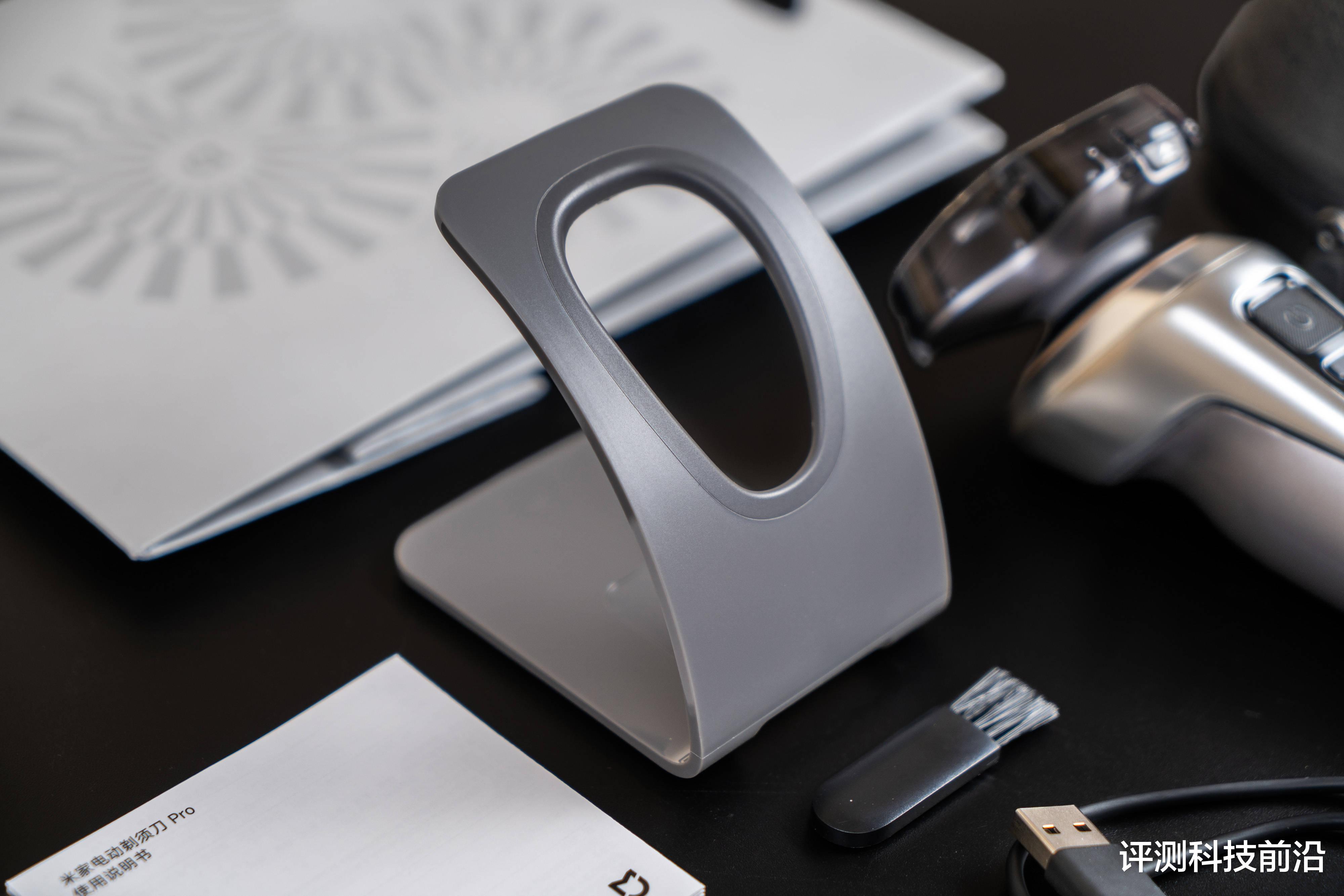 ▼除了一本使用说明书和一本快速指南外,配件有一根type-c的专用充电线、一个清洁毛刷、一个剃须刀支架、便携收纳包