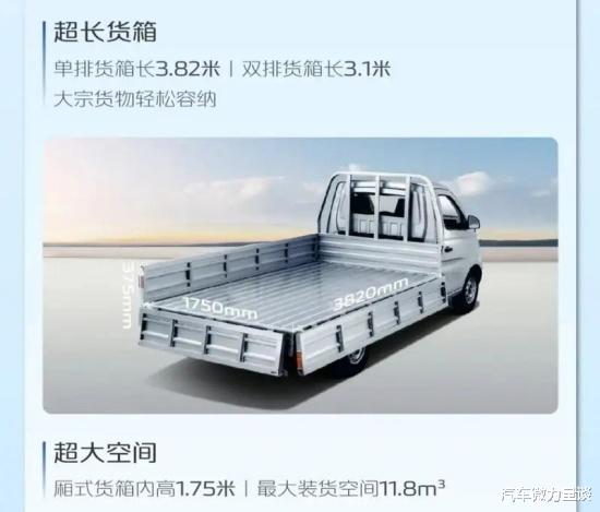 外观方面,新车延续了老款车型一贯的设计风格,前脸多边形格栅内部采用了直瀑式设计,搭配上两侧规则的大灯与底部包围的黑色饰版装饰,为前脸带来了不错的视觉气场。尺寸方面,单排货箱长3.82米,双排货箱长3.1米,厢式货箱内高1.75米,最大装货空间11.8立方米。