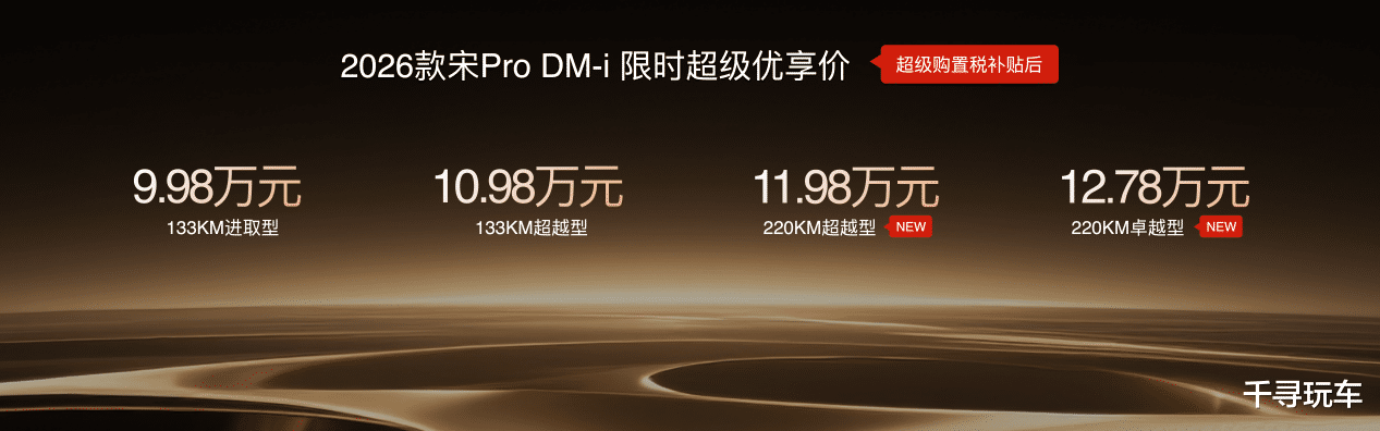 此次,2026款秦PLUS DM-i三款车型售价7.98万元-9.98万元;2026秦L DM-i四款车型限时超级优享价9.28万元-12.28万元;2026款宋Pro DM-i限时超级优享价9.98万元-12.78万元。