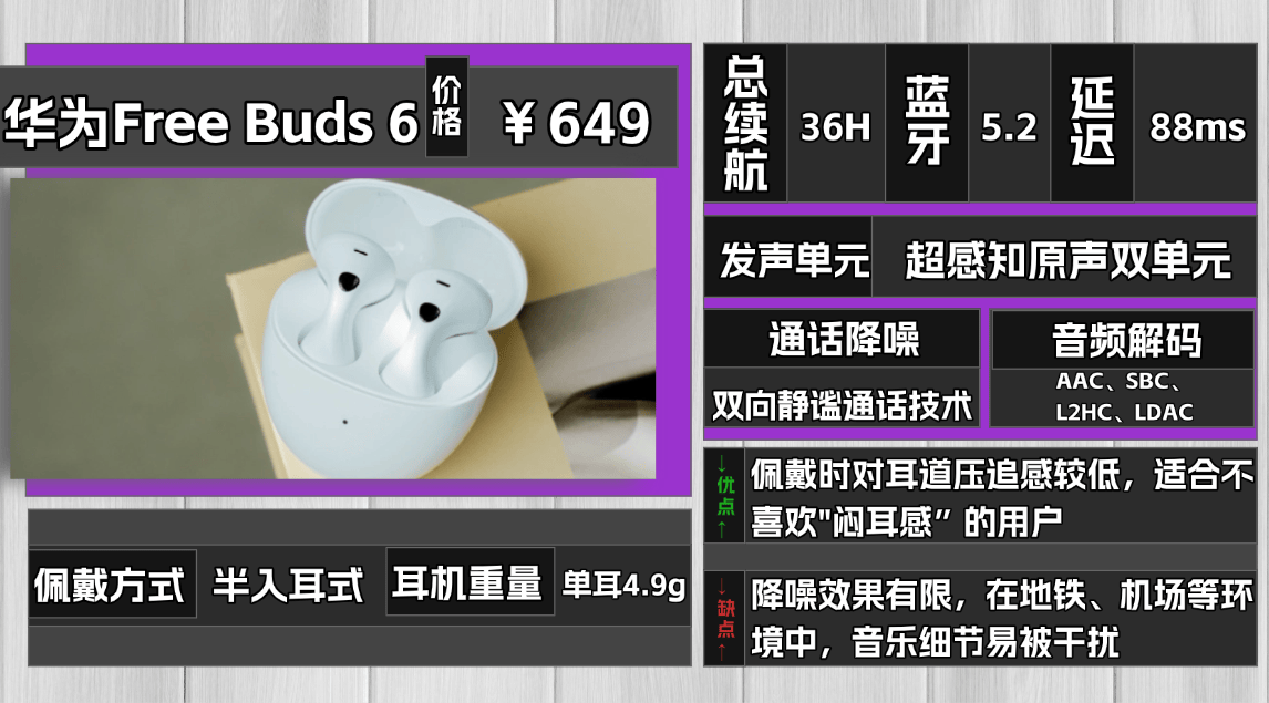 推荐产品2、华 为F reeBuds 6蓝牙耳机