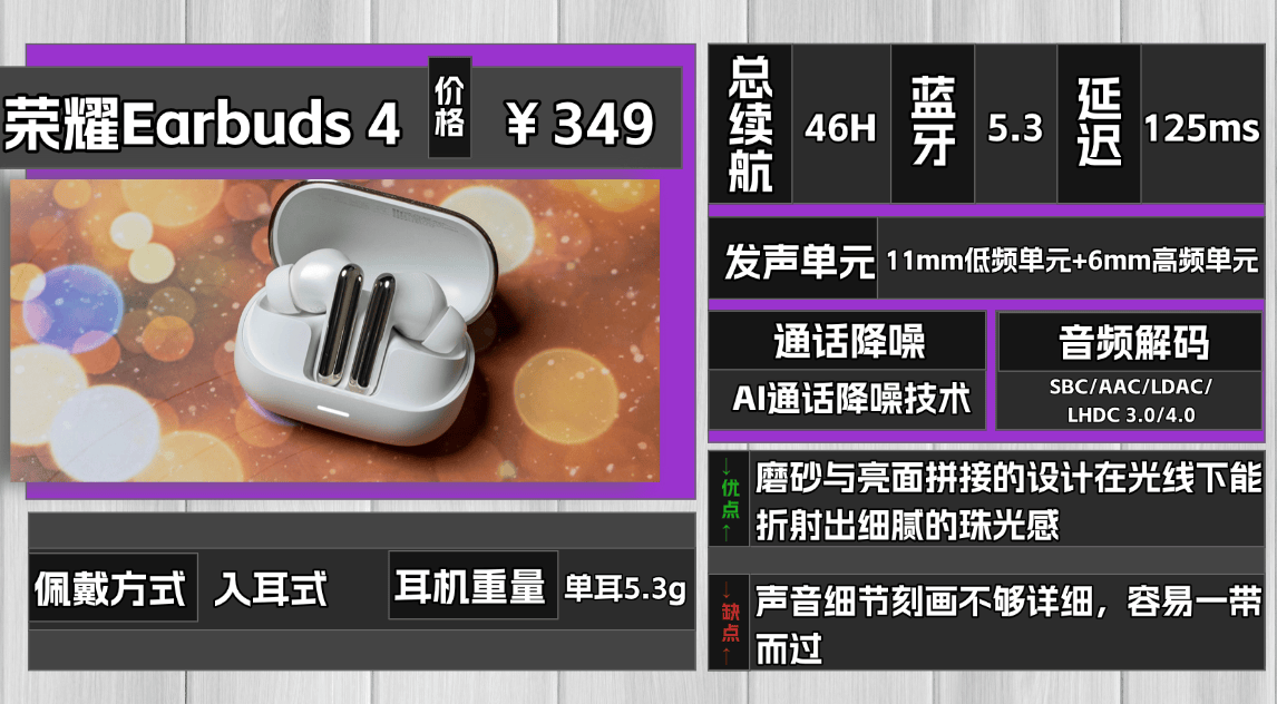 ③ 此外,蓝牙技术与解码协议对音质影响显著。采用蓝牙5.4及以上,即便功率与普通机型相当,也能通过更高效的传输,让声音更清晰、失真更低,提升整体听感。